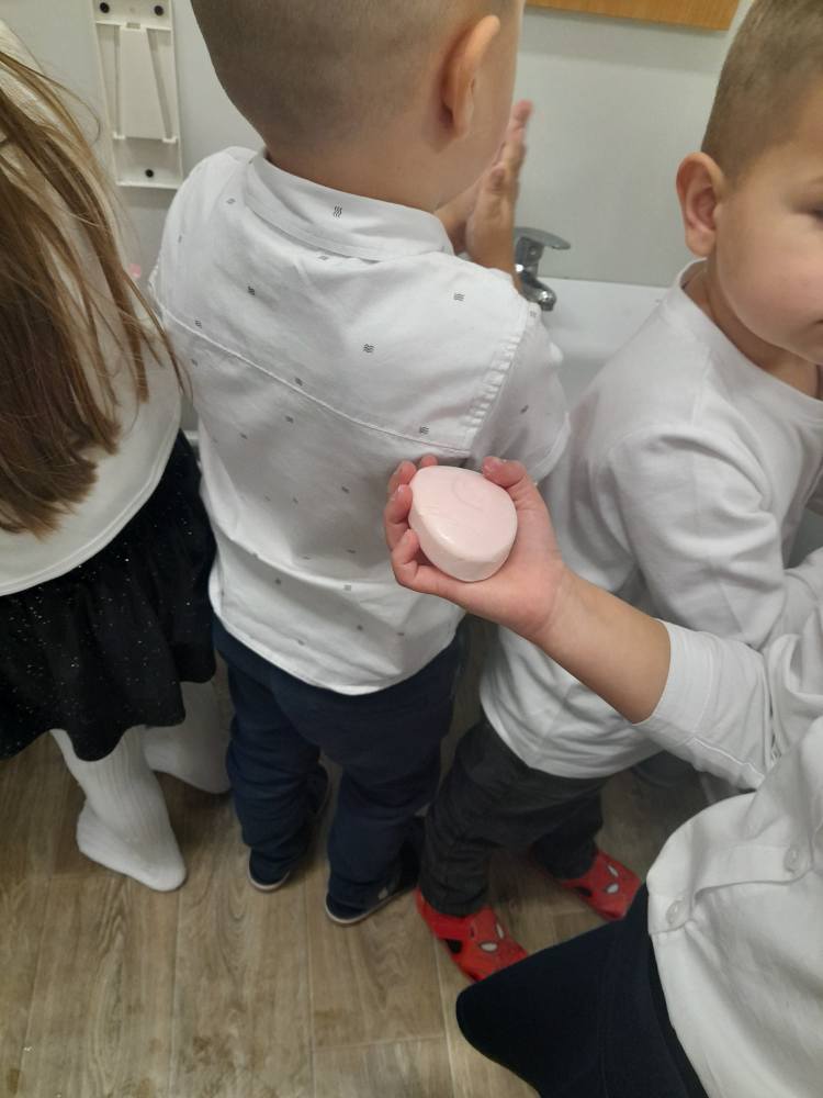 15 października w grupie Jeżyki obchodziliśmy Dzień Mycia Rąk – bardzo ważne święto, które przypomina nam, jak istotna jest codzienna higiena.