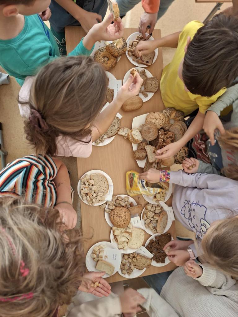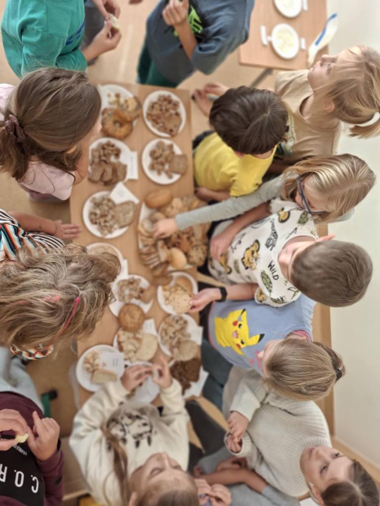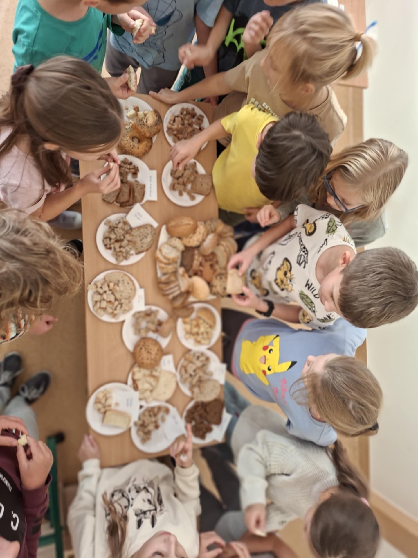 Nie zabrakło też pysznej części zajęć – wspólna degustacja pieczywa, które dzieci przyniosły z domu, była prawdziwą ucztą dla zmysłów! 🧺🍞