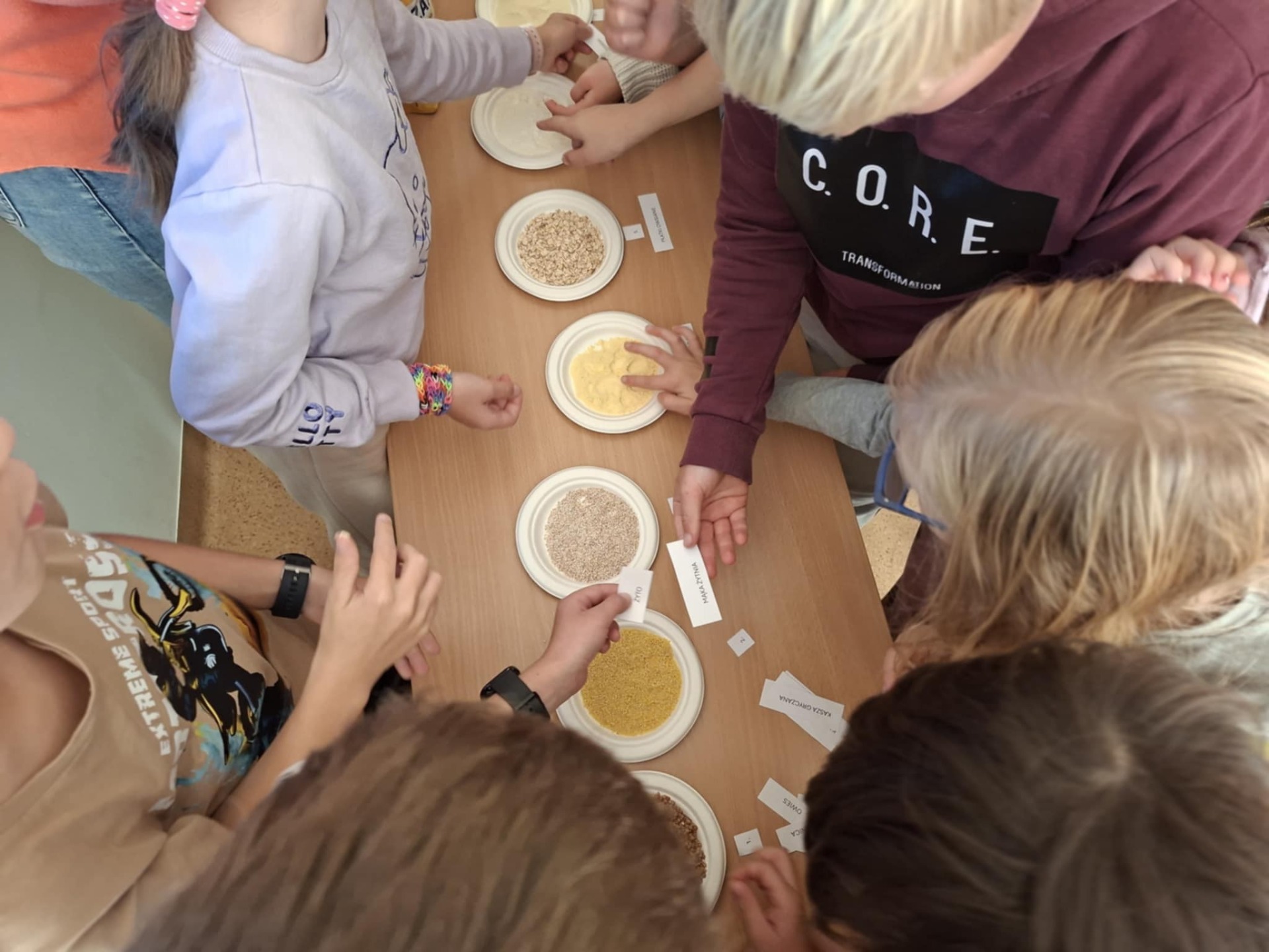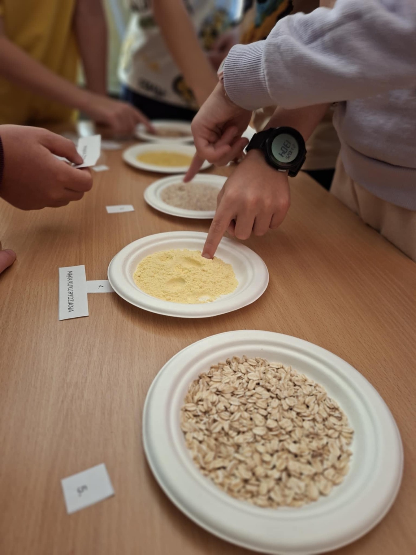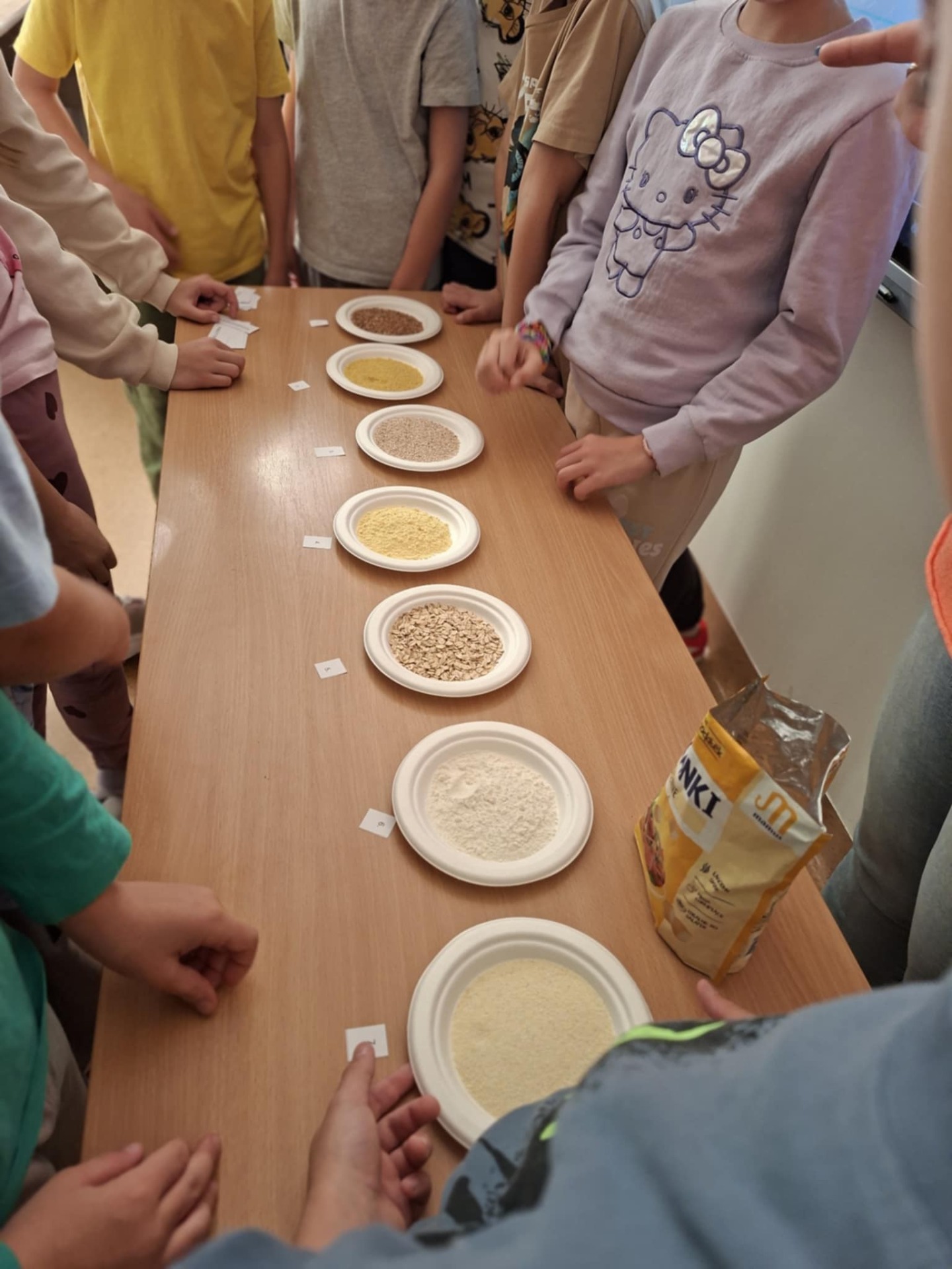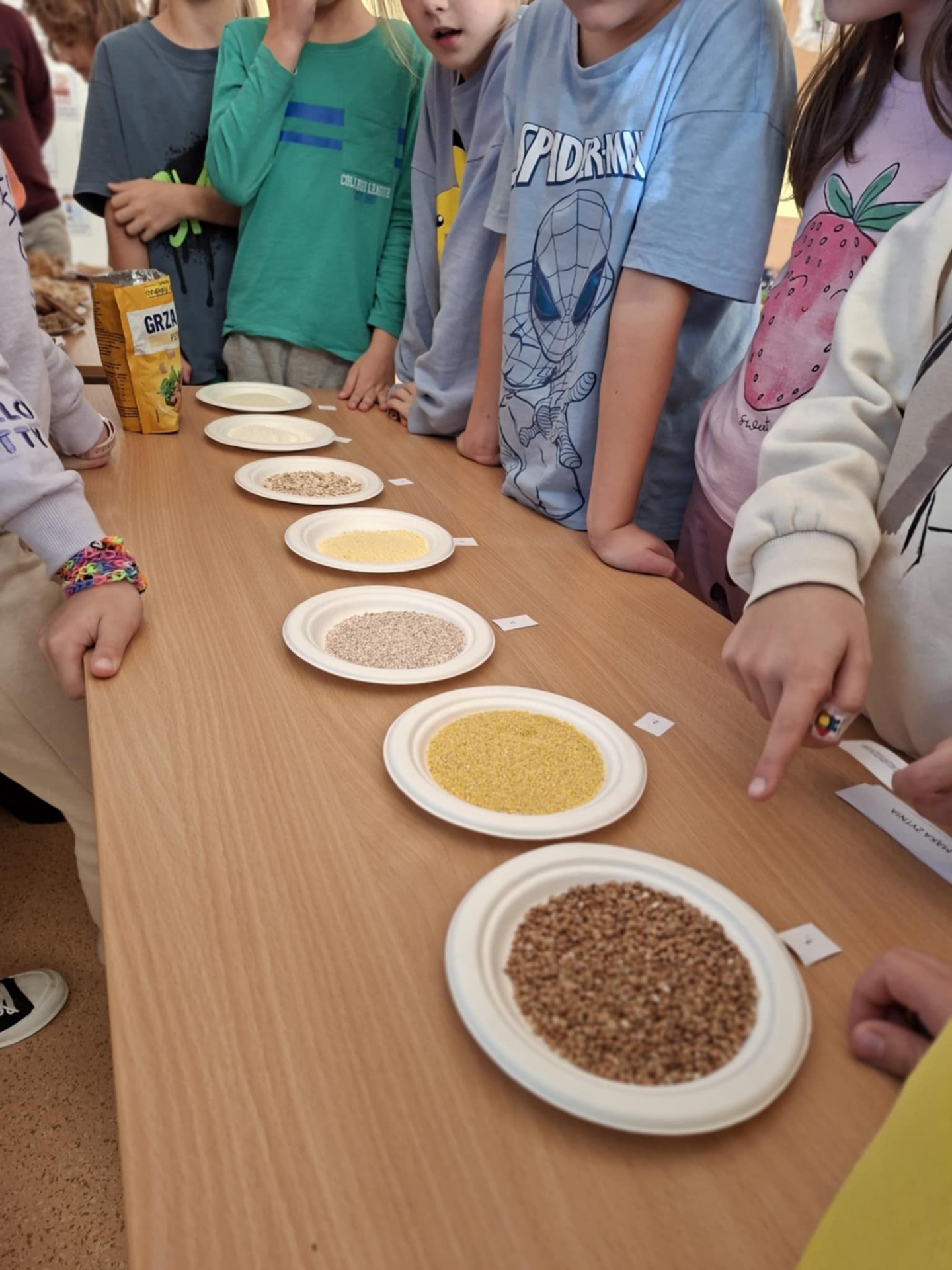 Zapach świeżego chleba unosił się dziś w klasie 3! 🥖🌾 Nasi uczniowie mieli okazję przenieść się w świat zbóż i kasz – uczyli się rozpoznawać różne ich rodzaje oraz dowiadywali się, z jakich zbóż powstają. 📚🌱