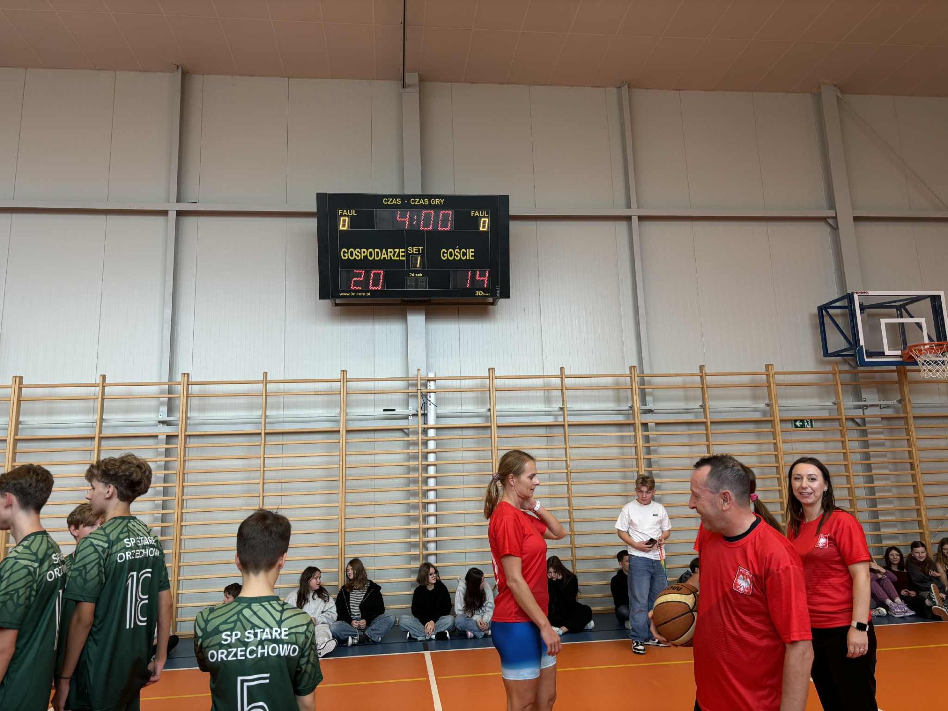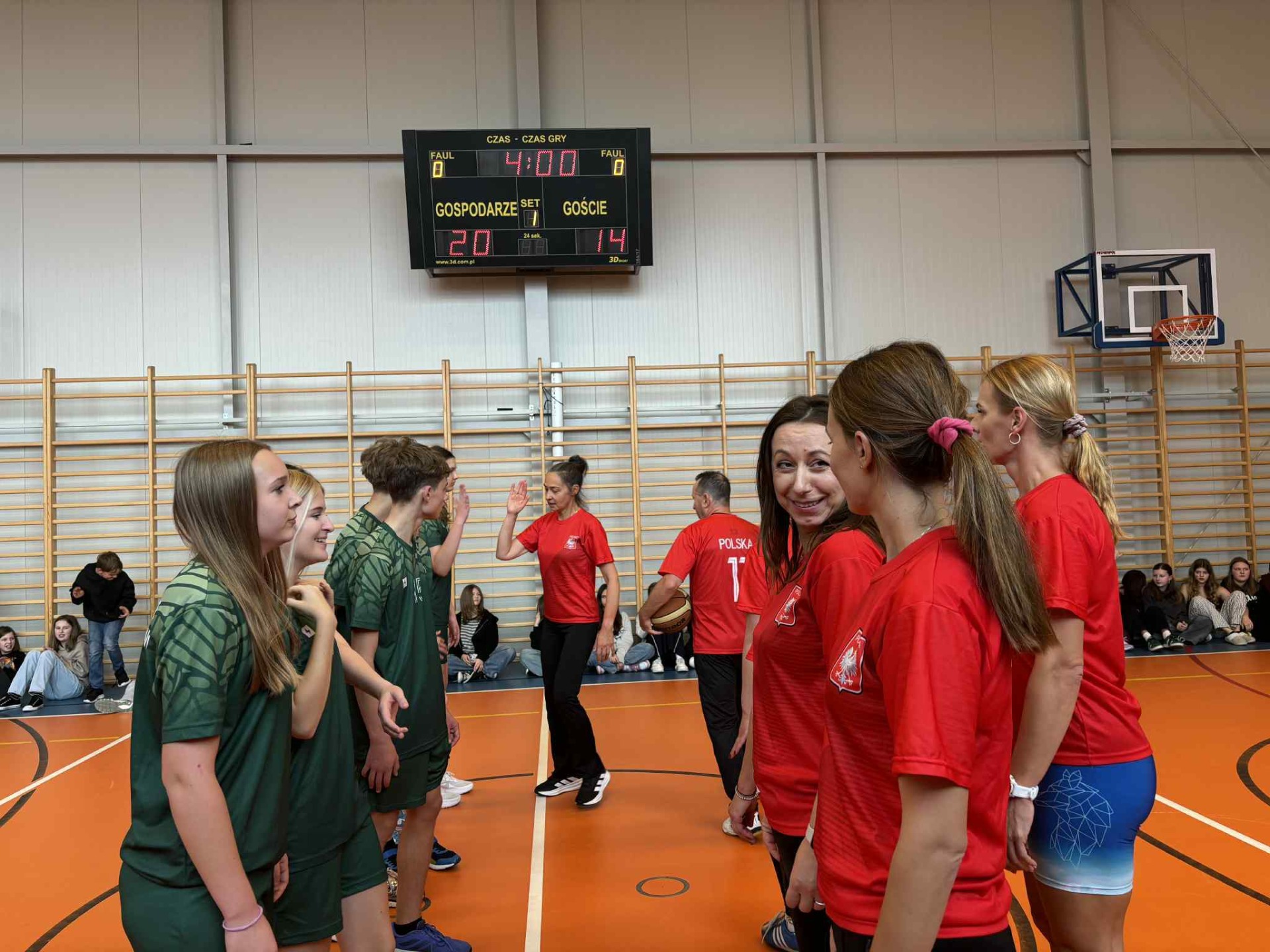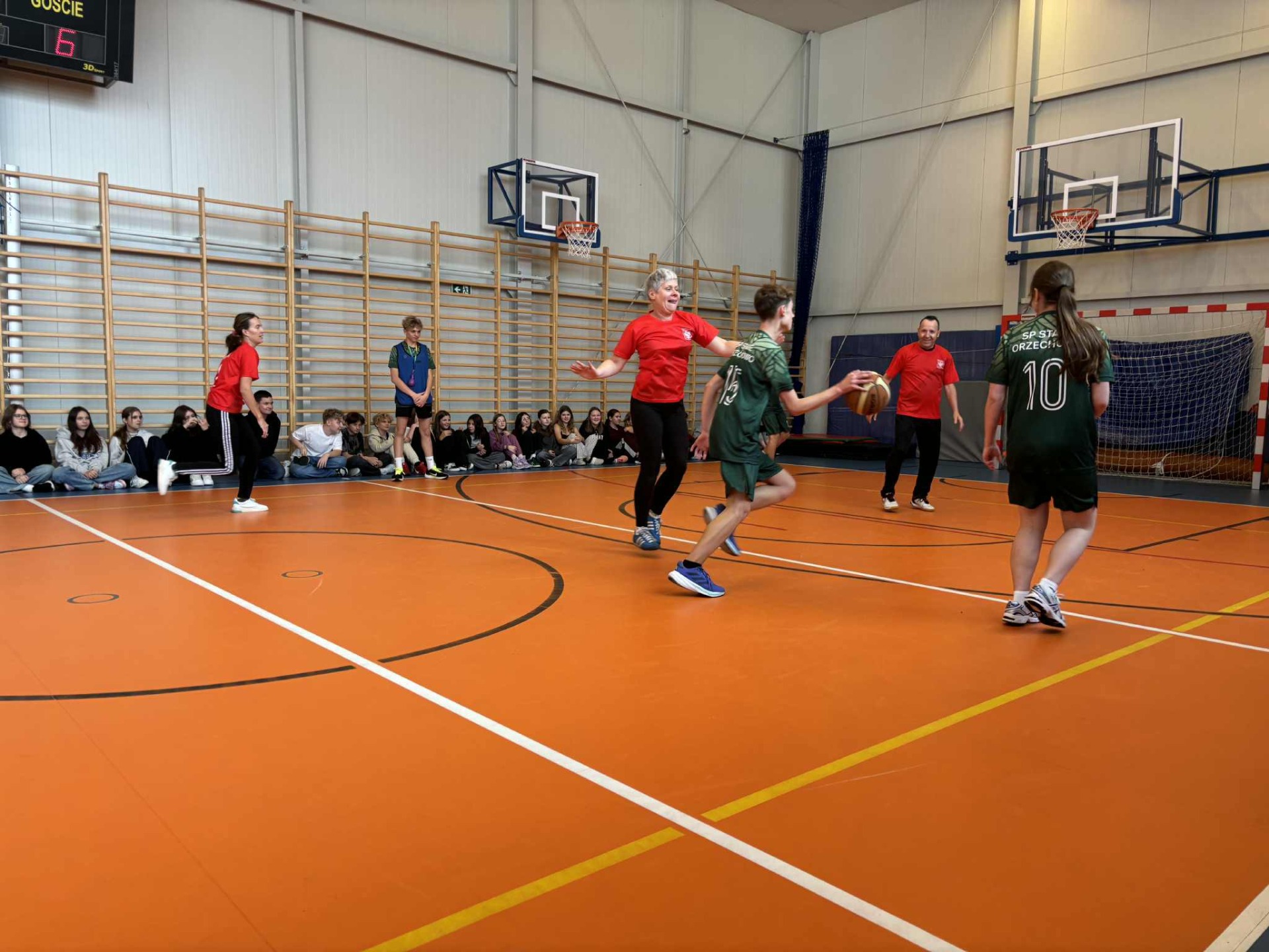 Z okazji Dnia Edukacji Narodowej, zgodnie ze szkolną tradycją, odbył się mecz piłki koszykowej pomiędzy nauczycielami a uczniami. Spotkanie dostarczyło wielu emocji, a obie drużyny wykazały się ogromnym zaangażowaniem i duchem sportowej rywalizacji. Po zaciętej walce zwyciężyła drużyna nauczycieli z wynikiem 20 : 14. W trakcie wydarzenia rozegrano również konkurs na Króla Strzelców, w którym najlepszym zawodnikiem okazał się uczeń klasy 6 – Patryk K. Gratulujemy wszystkim uczestnikom i dziękujemy za wspólną zabawę!
