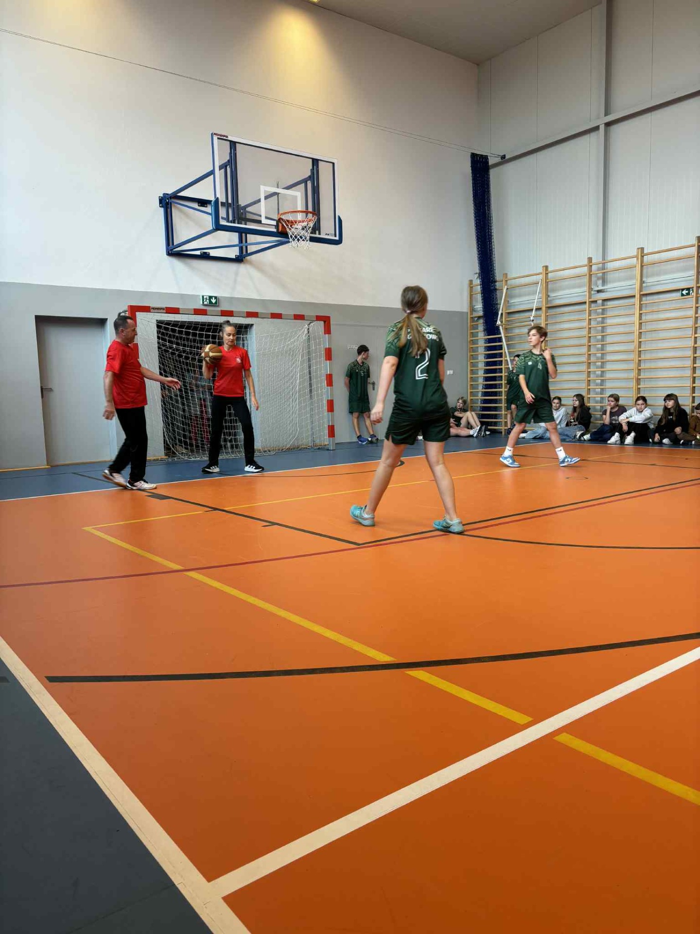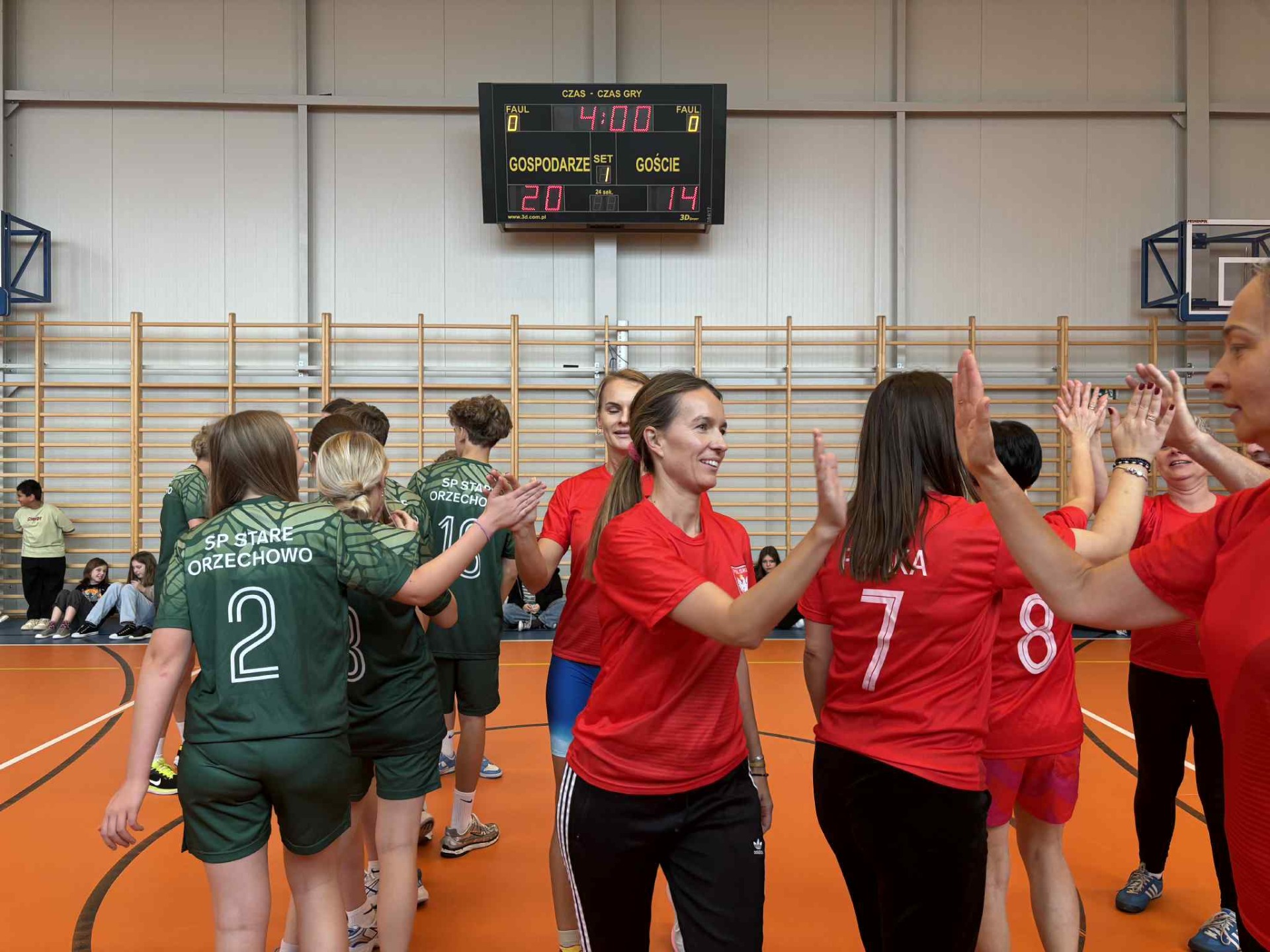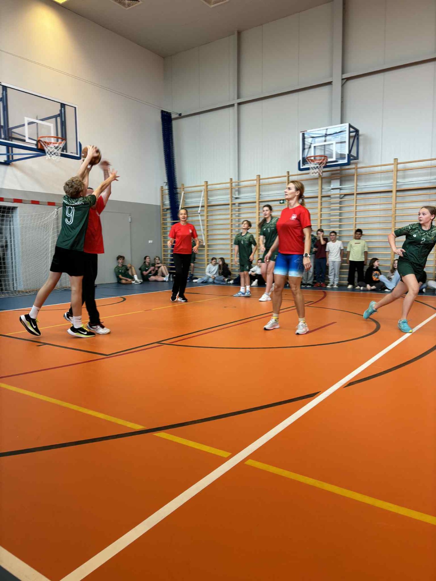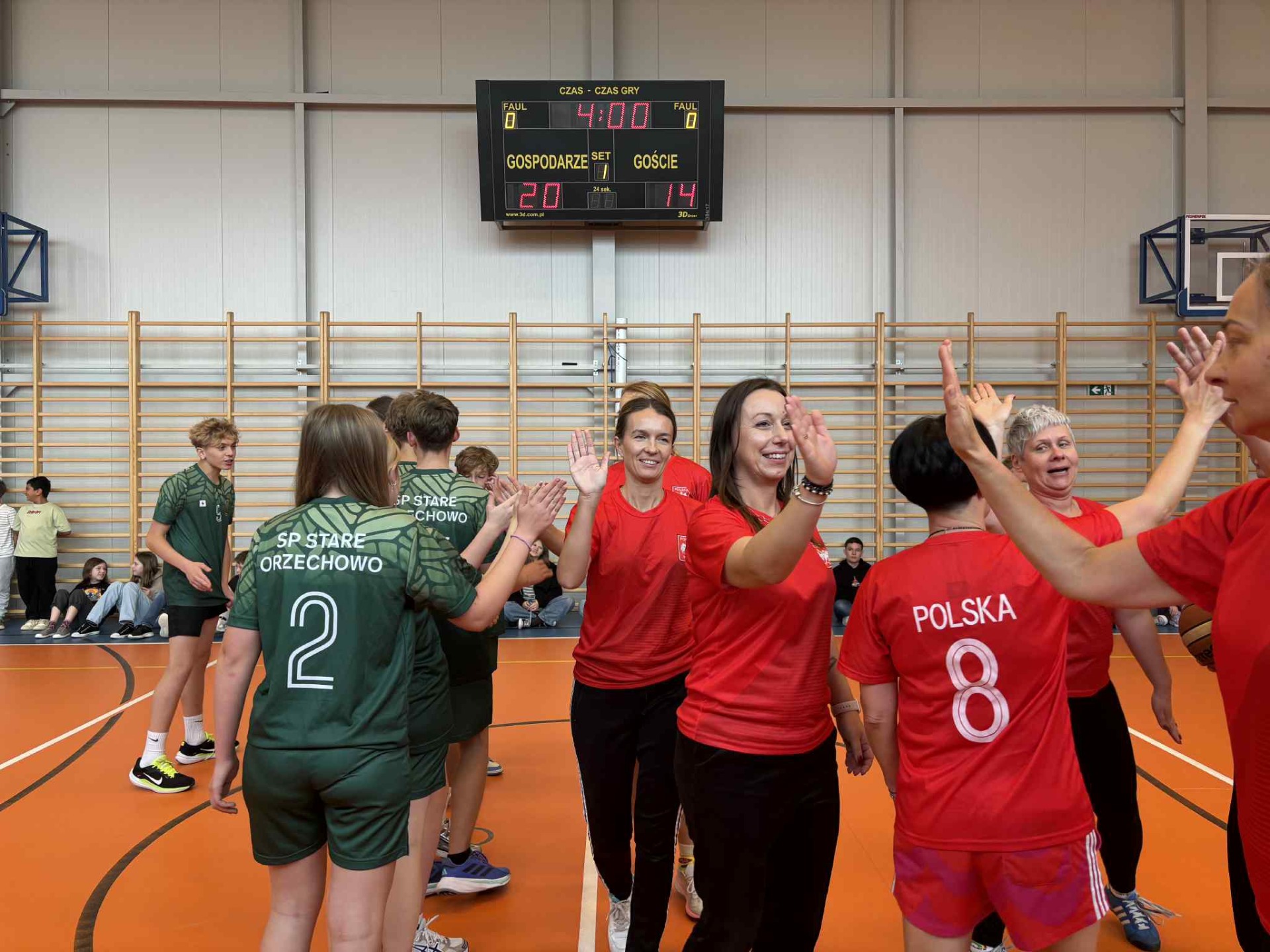 Z okazji Dnia Edukacji Narodowej, zgodnie ze szkolną tradycją, odbył się mecz piłki koszykowej pomiędzy nauczycielami a uczniami. Spotkanie dostarczyło wielu emocji, a obie drużyny wykazały się ogromnym zaangażowaniem i duchem sportowej rywalizacji. Po zaciętej walce zwyciężyła drużyna nauczycieli z wynikiem 20 : 14. W trakcie wydarzenia rozegrano również konkurs na Króla Strzelców, w którym najlepszym zawodnikiem okazał się uczeń klasy 6 – Patryk K. Gratulujemy wszystkim uczestnikom i dziękujemy za wspólną zabawę!