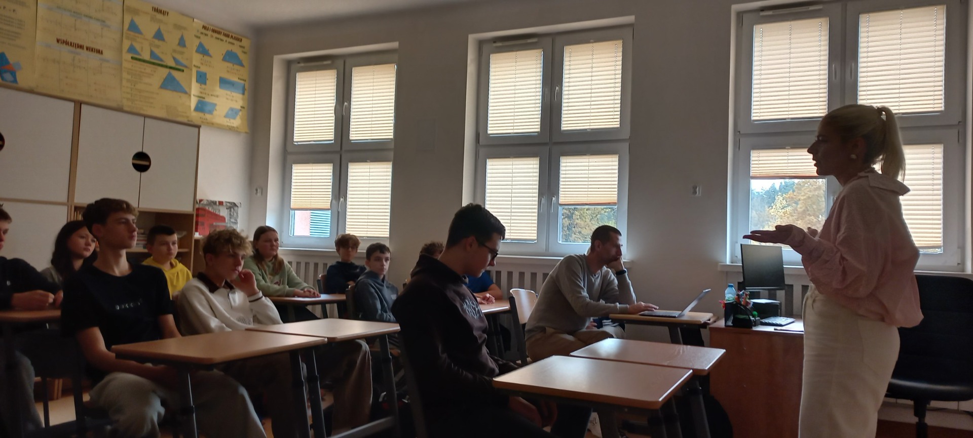 Odwiedziła nas dziennikarka, początkująca aktorka i przyjaciółka naszej szkoły – Marcelina Pietras. W ramach projektu „Mazowsze oddycha ciszej” poprowadziła dla naszych uczniów niezwykle ciekawe warsztaty pt. „Jak mówić ciszej i słuchać uważniej”. Spotkanie było pełne inspiracji, refleksji i dobrej energii. Uczniowie mieli okazję przekonać się, jak wielką moc ma słowo, ton głosu i uważne słuchanie drugiego człowieka. Podczas zajęć uczestnicy brali udział w praktycznych ćwiczeniach, które pomagały im rozwijać umiejętność komunikacji, panowania nad emocjami i świadomego używania głosu. Marcelina w przystępny i serdeczny sposób zachęcała młodzież do tego, by na co dzień mówić z większym spokojem, empatią i uważnością – wobec innych i siebie samych. Dziękujemy Marcelinie za odwiedziny, inspirujące zajęcia i za to, że kolejny raz udowodniła, że cisza może być pełna znaczenia. 💬✨
