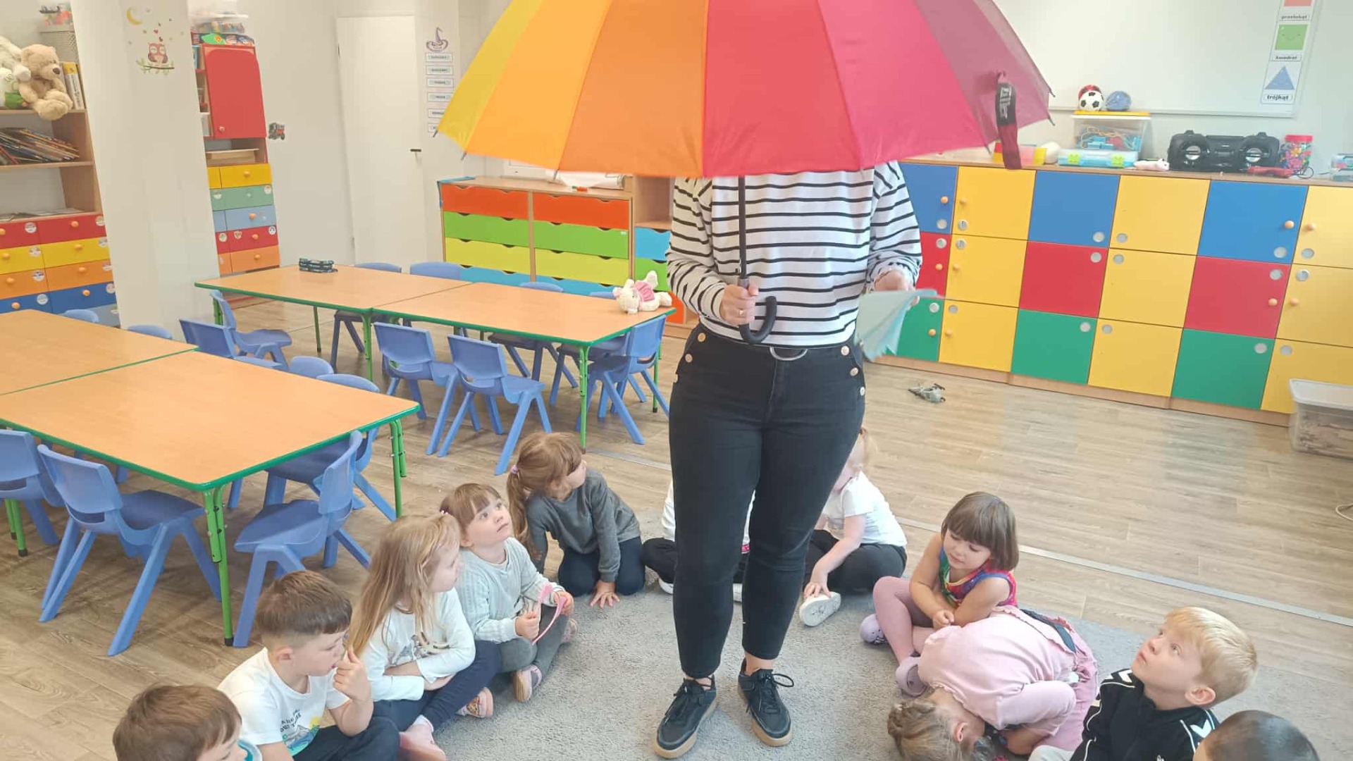 Jesienne przygody w grupie „Misiów” 🍁🐻 Ostatnie dwa tygodnie w naszej grupie upłynęły w prawdziwie jesiennej atmosferze. Dzieci z zainteresowaniem przyglądały się przyrodzie – poznawały zwierzęta przygotowujące się do zimy oraz obserwowały zmieniającą się pogodę. Przedszkolaki tworzyły przepiękne prace plastyczne inspirowane jesiennymi barwami. Nie zabrakło też tańca, zabawy i kodowania z wykorzystaniem naszego nowego sprzętu, który wzbudził ogromną ciekawość i radość.Dzieci rozwijały swoje umiejętności matematyczne, słuchały jesiennych zagadek i wierszy, a także doskonaliły sprawność manualną podczas różnorodnych działań. 🌧☔🌈🧥