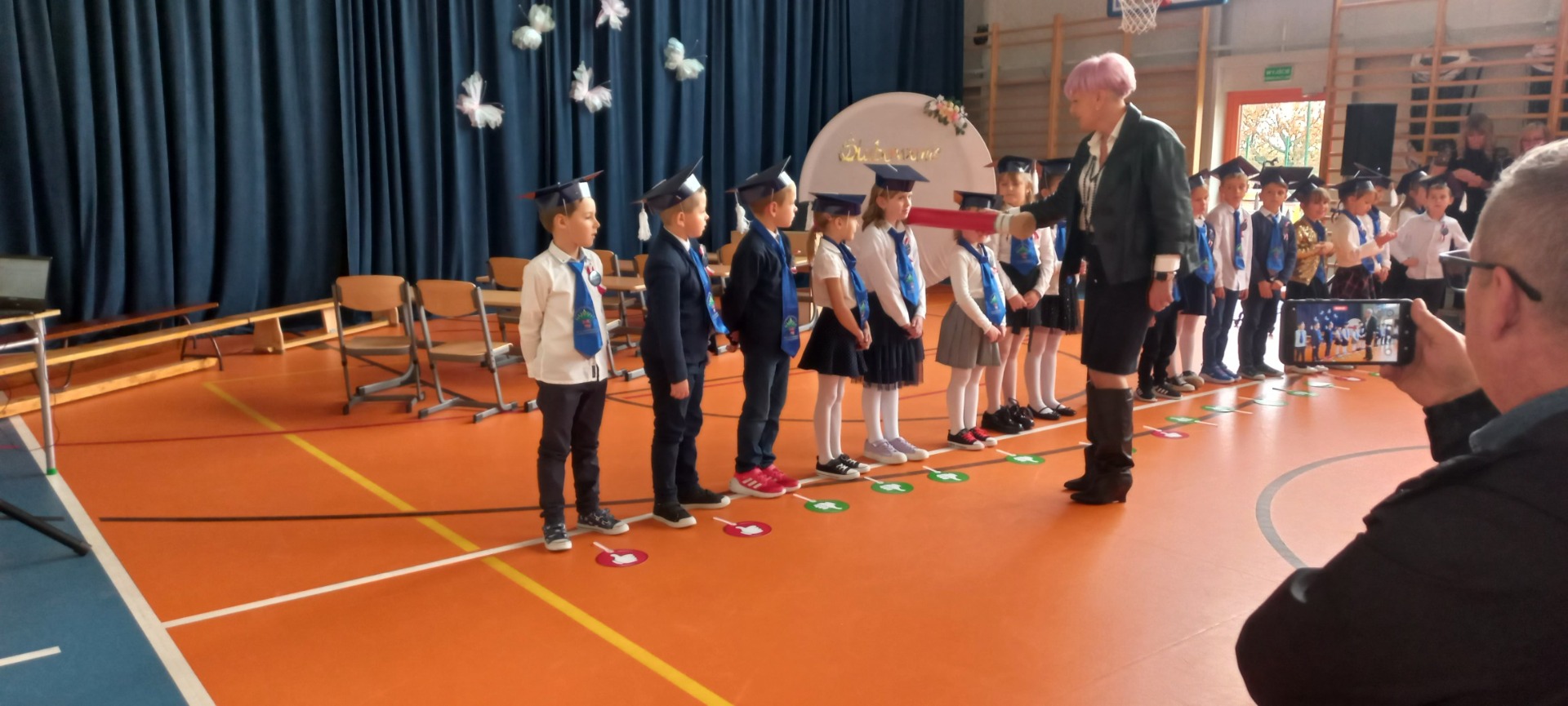 W naszej szkole odbyła się wyjątkowa uroczystość – ślubowanie uczniów klasy pierwszej! 💙 Z dumą obserwowaliśmy, jak nasi najmłodsi uczniowie złożyli uroczyste przyrzeczenie, że będą pilnie się uczyć, dbać o kolegów i koleżanki oraz godnie reprezentować swoją szkołę. Najważniejszym momentem dnia było oczywiście pasowanie na ucznia, którego dokonała Pani Dyrektor symbolicznym ołówkiem ✏️. Od tej chwili pierwszoklasiści stali się pełnoprawnymi członkami naszej szkolnej społeczności! 👩‍🏫👨‍🏫 Były wiersze, piosenki, uśmiechy i – jak przystało na tak ważny dzień – odrobina wzruszenia. 🥰 Gratulujemy wszystkim pierwszakom i życzymy im samych sukcesów, radości z odkrywania świata i wielu pięknych chwil w szkolnych murach! 🌈📚