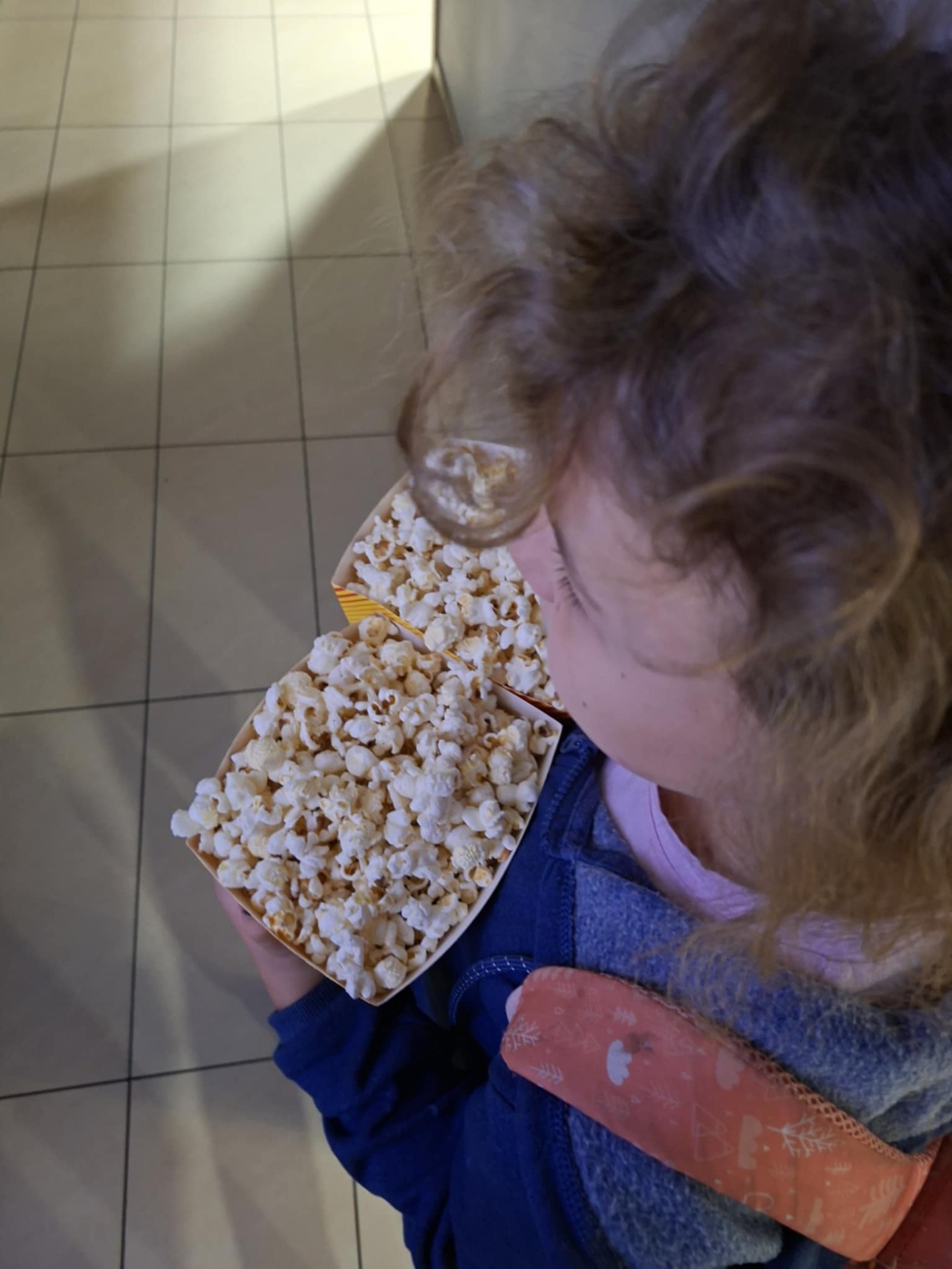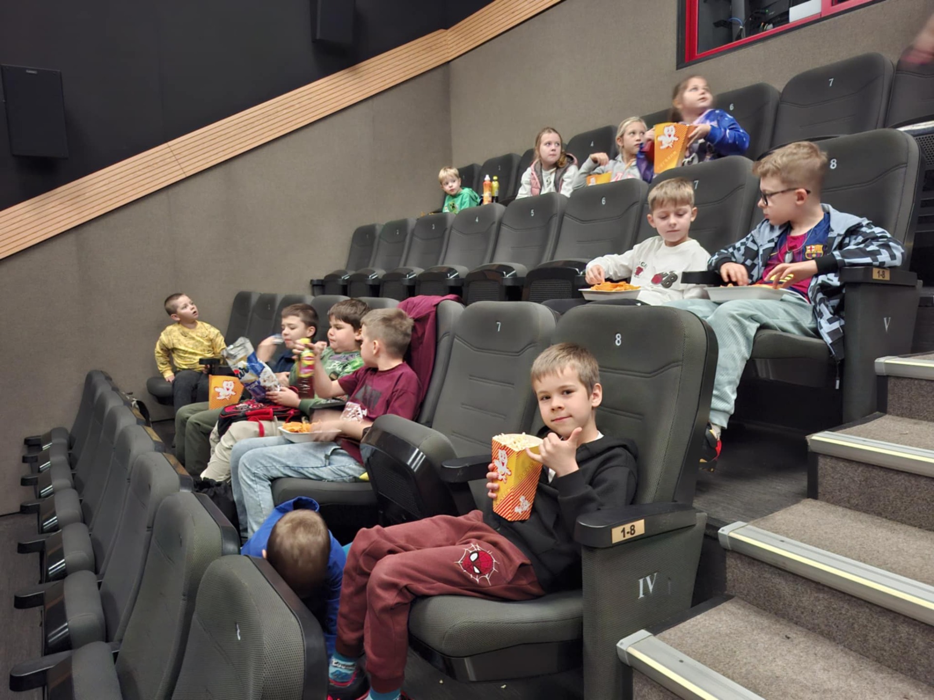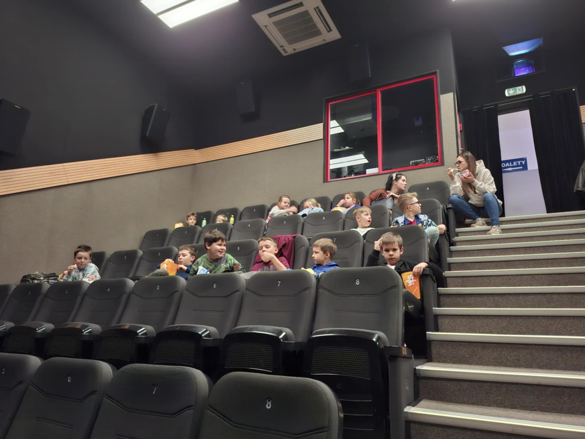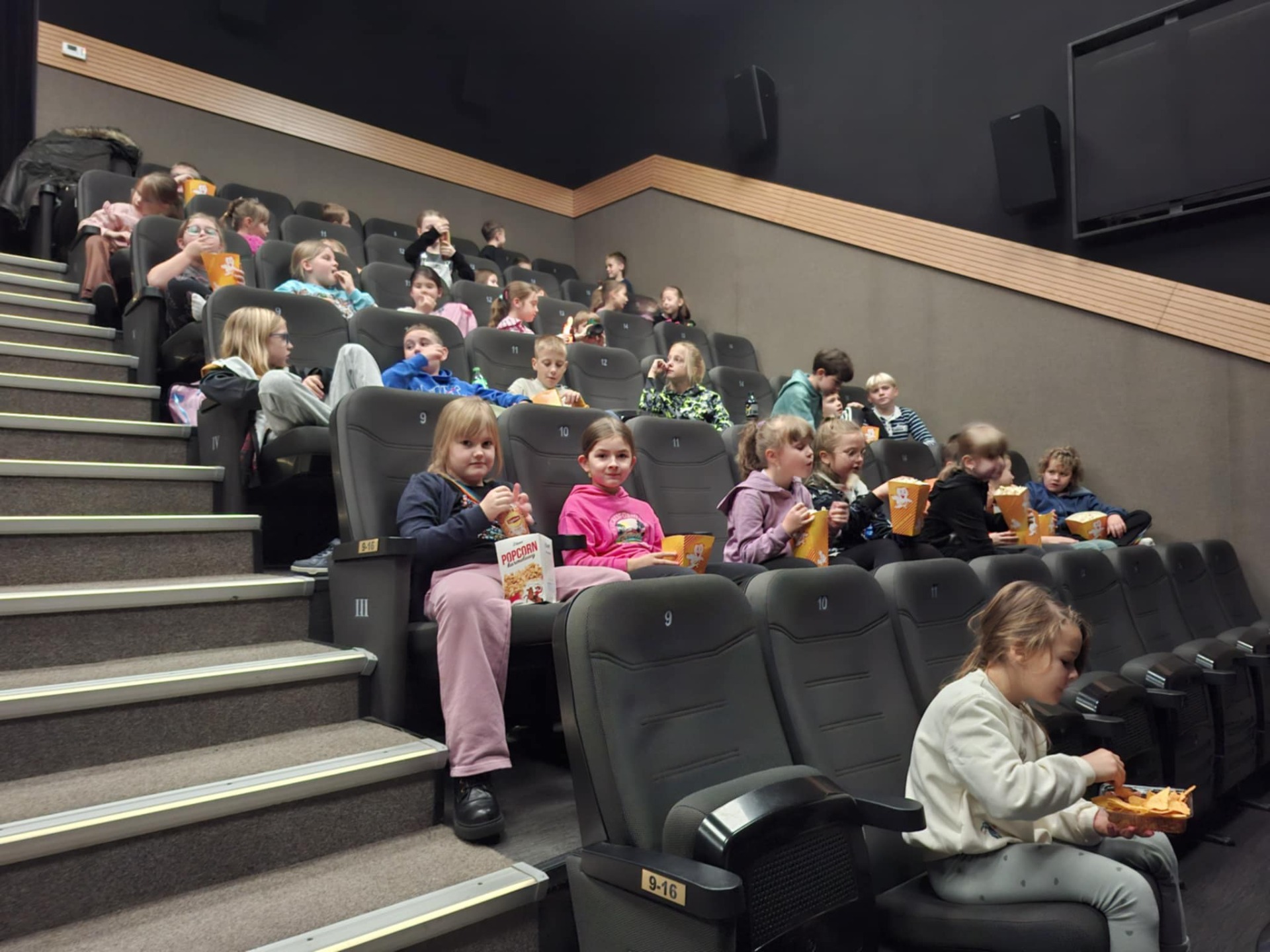 Uczniowie klas I–III, zajadając popcorn, z ogromnym zainteresowaniem śledzili przygody niezwykłych bohaterów. Seans dostarczył nam wielu emocji, śmiechu i inspiracji do dalszych rozmów o losach skarpetek. To był wspaniały początek tygodnia! 🧦✨