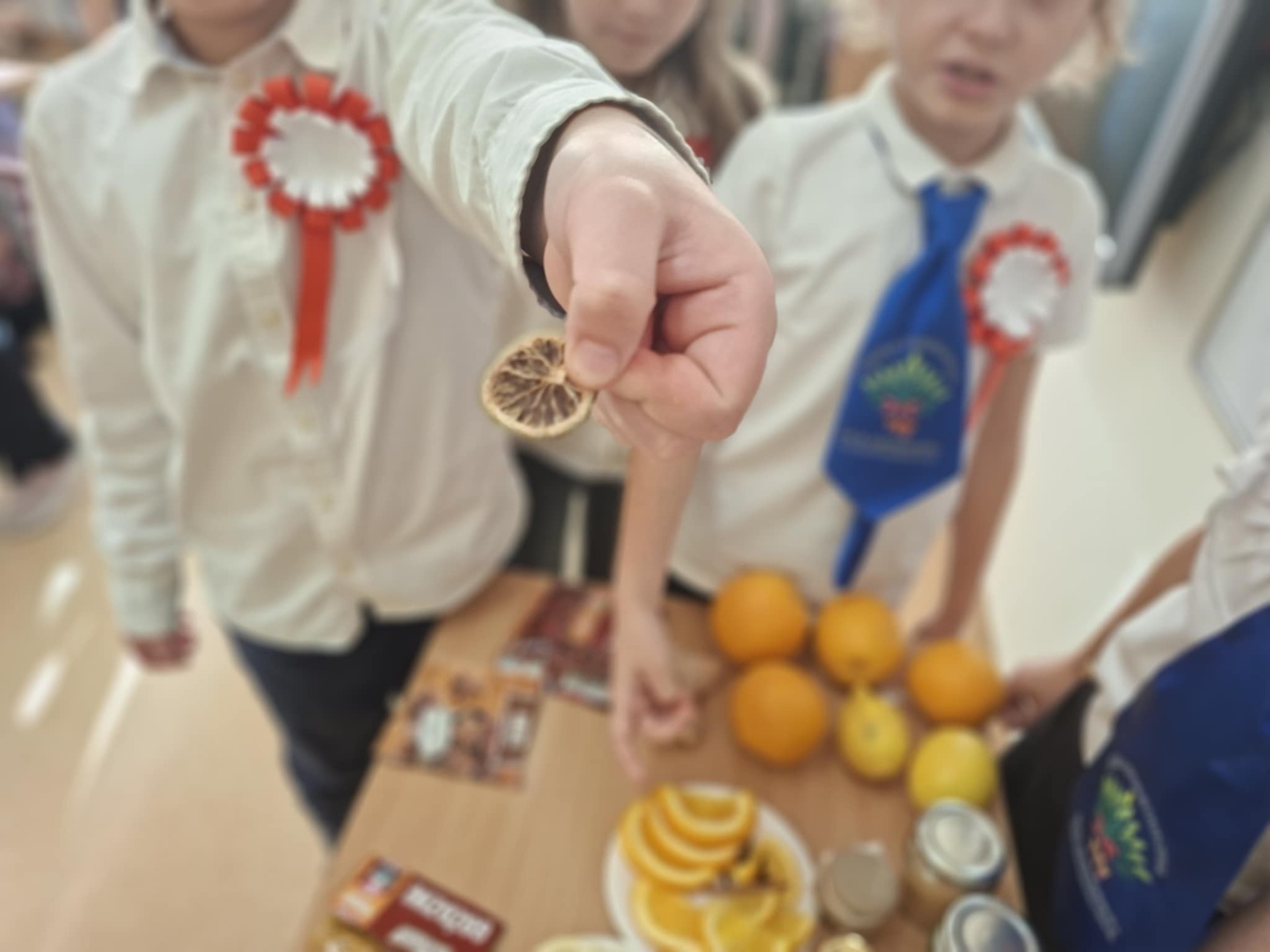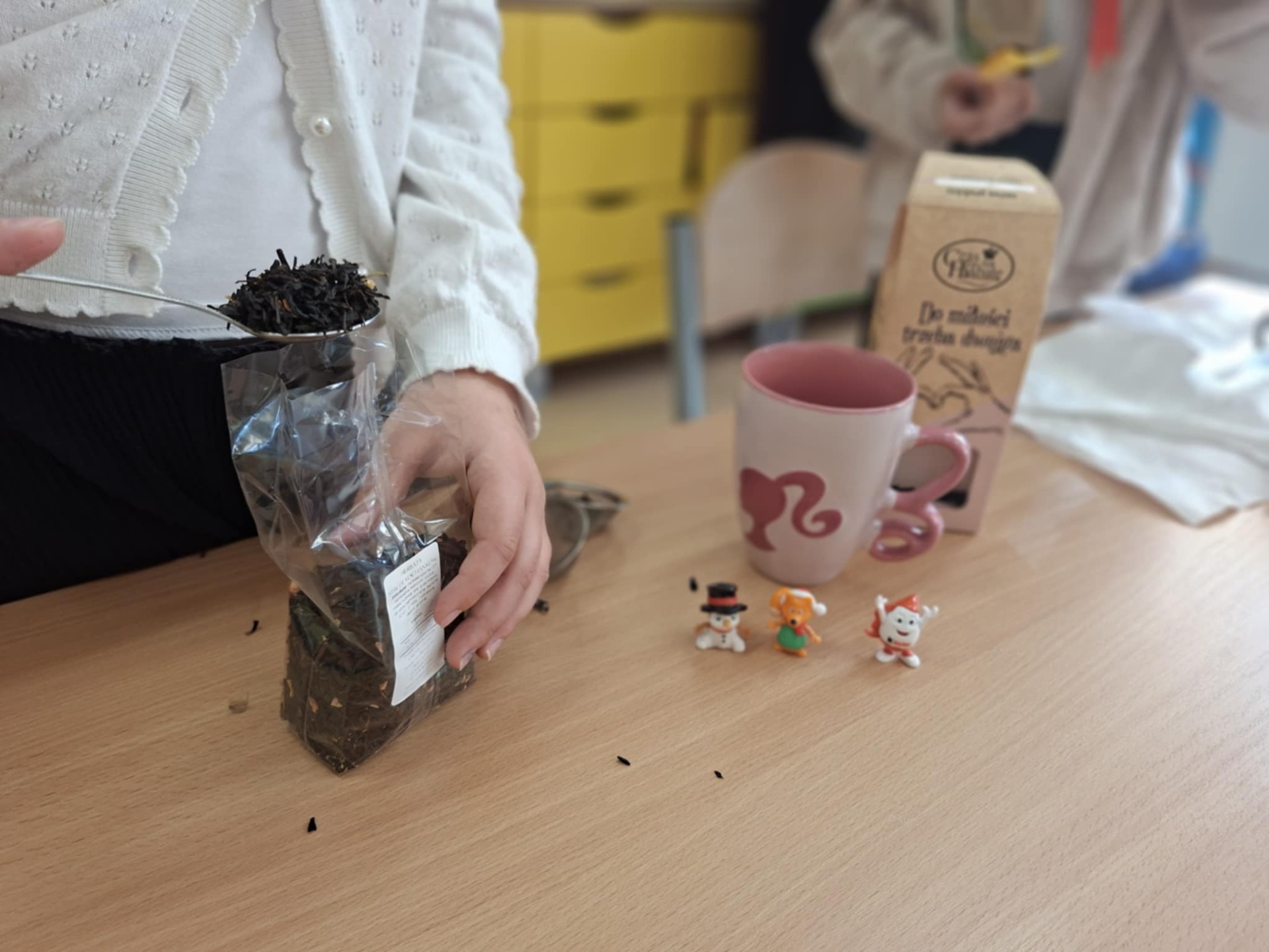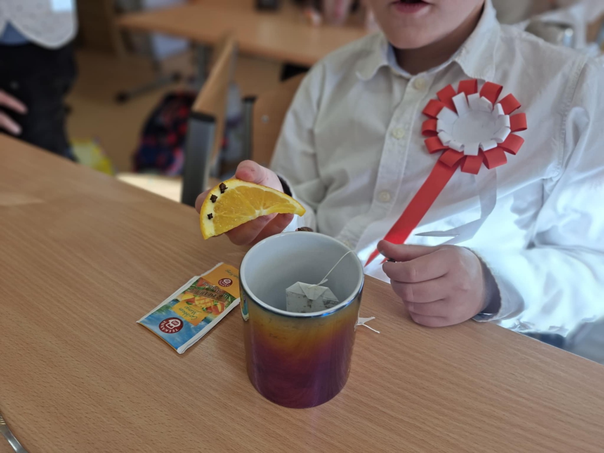 W naszej klasie unosił się wspaniały aromat jesiennej herbaty. Uczniowie przynieśli z domów różne rodzaje herbat oraz dodatki, takie jak miód, goździki, pomarańcze, cytryny czy cynamon. Wspólnie parzyli herbatę, poznając jej smaki i zapachy. Degustacja sprawiła wszystkim wiele radości i wprowadziła nas w prawdziwie jesienny nastrój.