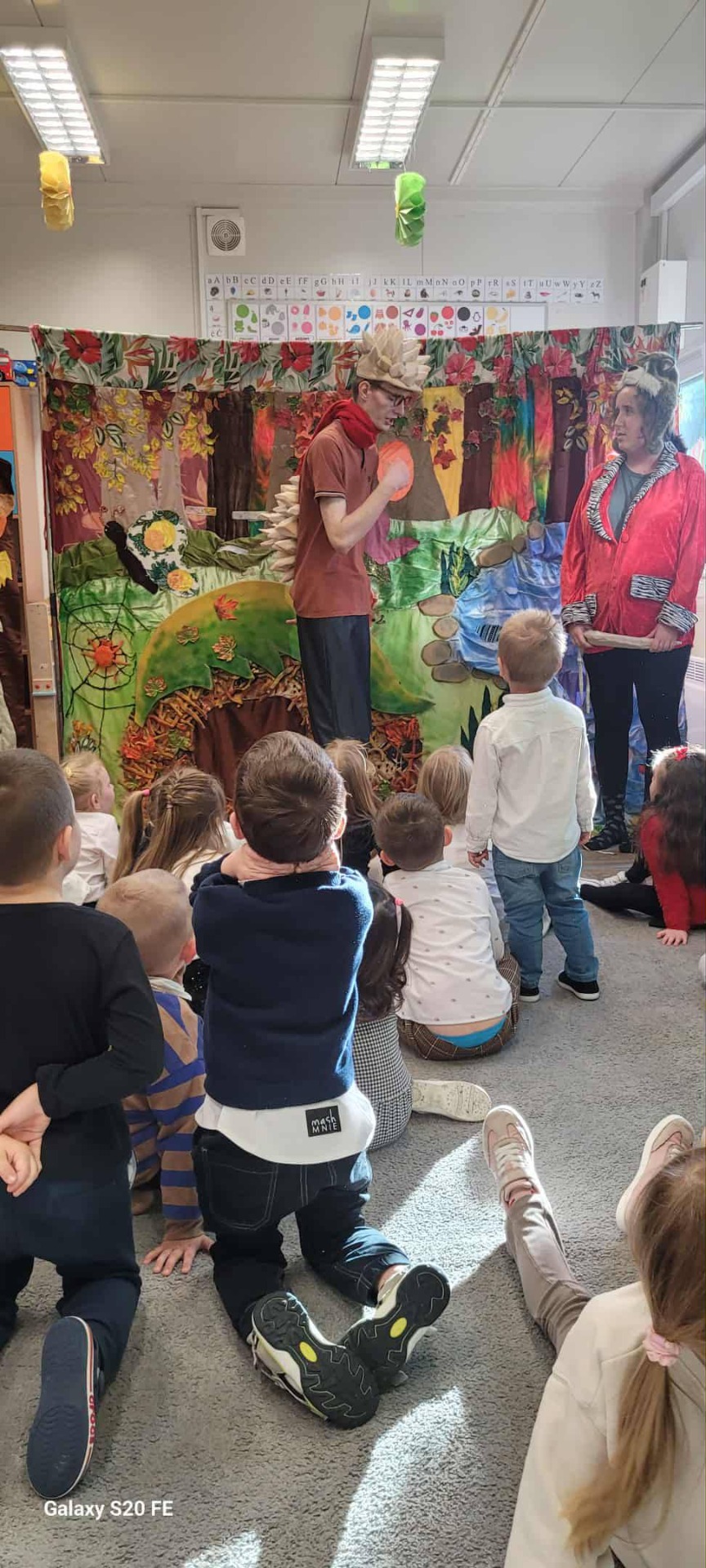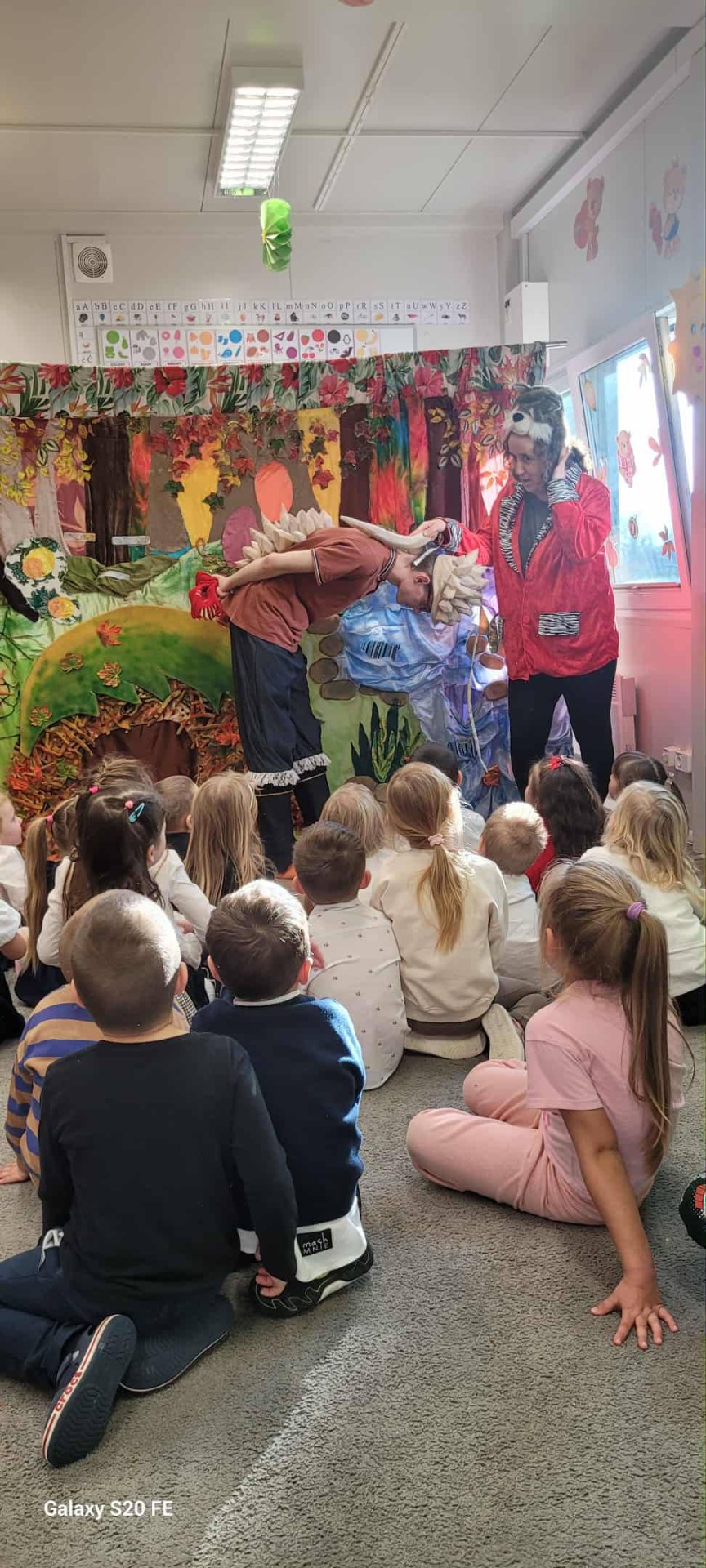 W piątek, 7 listopada 2025 roku, nasze przedszkolaki świętowały Dzień Jeża. Z tej okazji dzieci obejrzały edukacyjno-profilaktyczny teatrzyk pt. „Jeżyk Samochwała”. Dzieci z wielkim zainteresowaniem śledziły przygody bohatera, żywo reagując na jego wesołe i czasem pouczające przygody. To był radosny i pełen wrażeń dzień, który na długo pozostanie w pamięci naszych małych widzów! 🦔💛