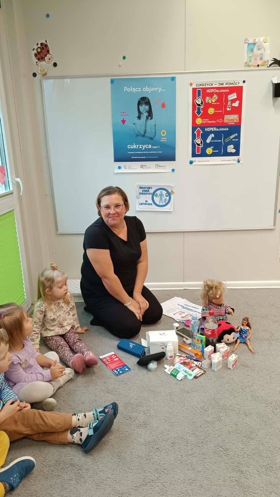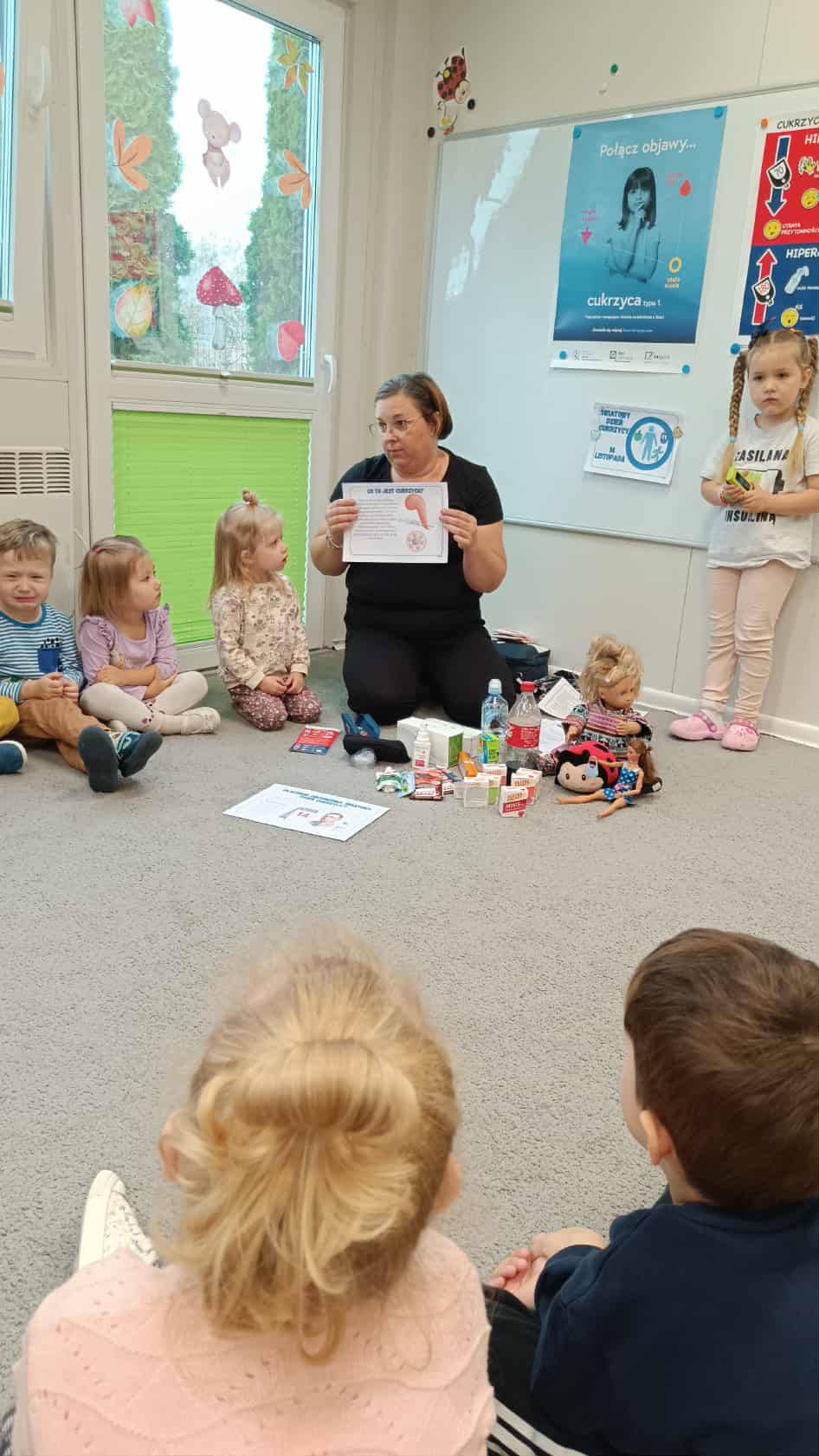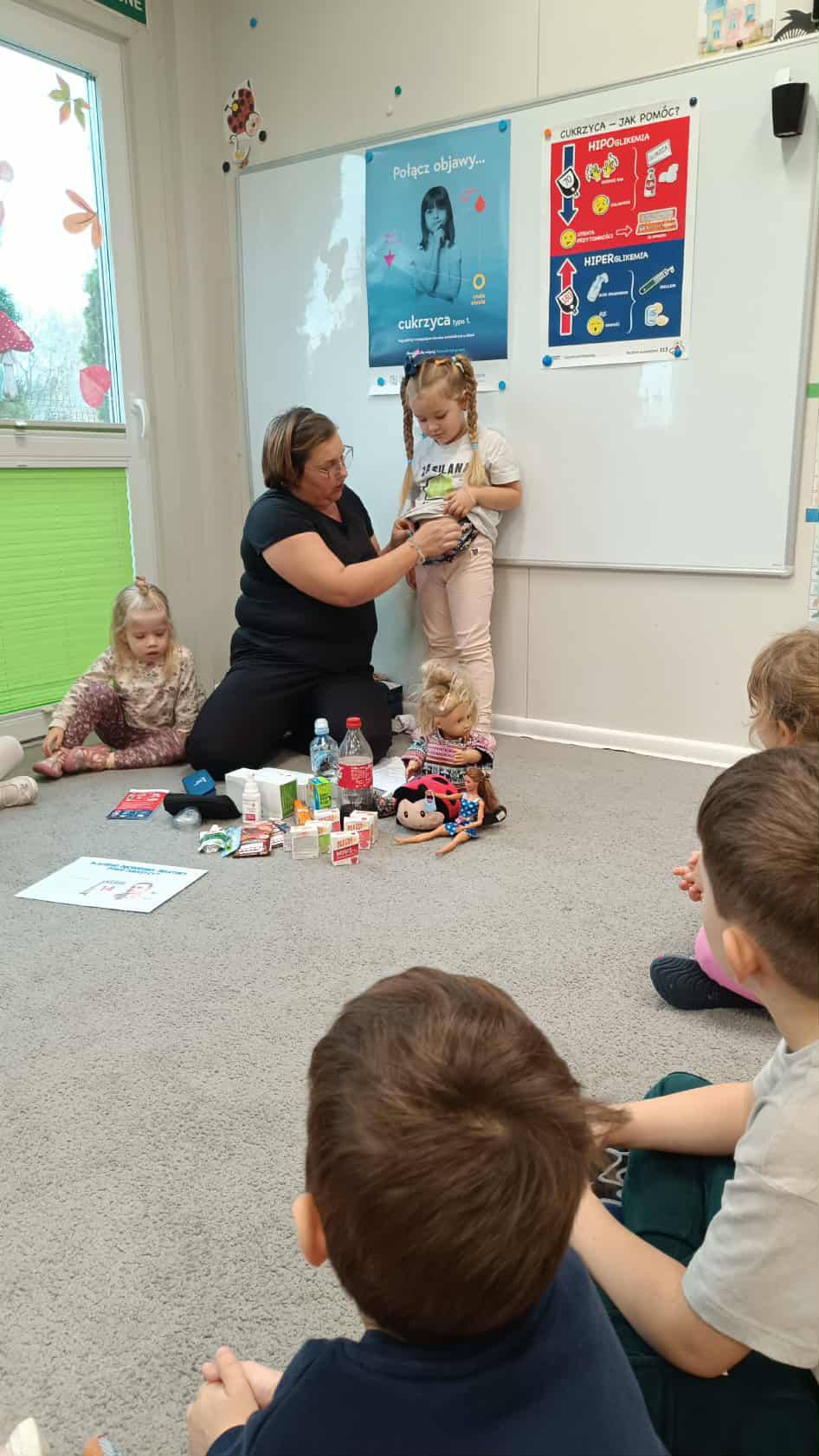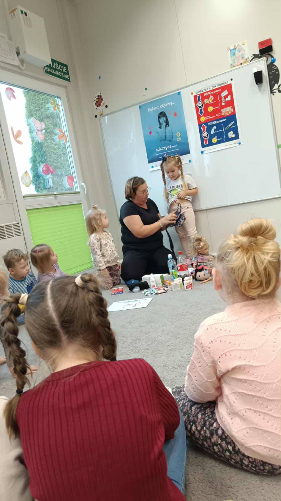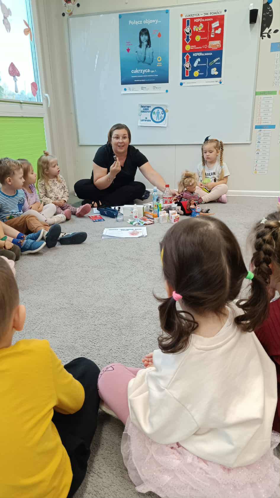 W naszym przedszkolu obchodziliśmy Światowy Dzień Walki z Cukrzycą.🍬🍭🧁 Dzięki uprzejmości Pani Wioli dzieci dowiedziały się, z czym na co dzień mierzą się osoby chorujące na cukrzycę – jak wygląda kontrolowanie poziomu cukru, dlaczego tak ważna jest dieta oraz jak działa glukometr. Co więcej, w końcu odpowiedzieliśmy na trapiące przedszkolaki pytanie: „Dlaczego ich koleżanka może cukierka lub Coca-Colę?”🍬Dzieci zrozumiały, że czasami osoby z cukrzycą potrzebują szybko podnieść poziom cukru i wtedy słodki napój czy cukierek jest dla nich… formą pomocy, a nie zwykłą przekąską.