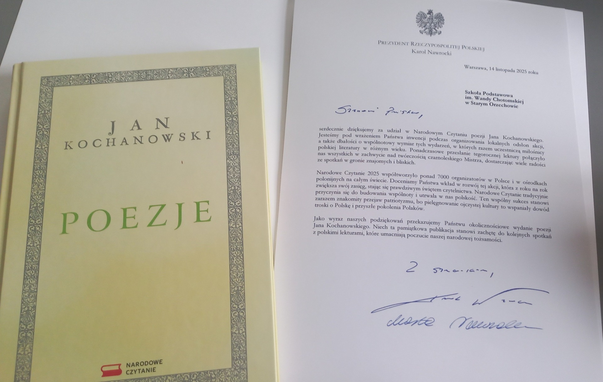 Z ogromną radością informujemy, że nasza szkoła otrzymała szczególne podziękowanie za udział w Narodowym Czytaniu 2025.