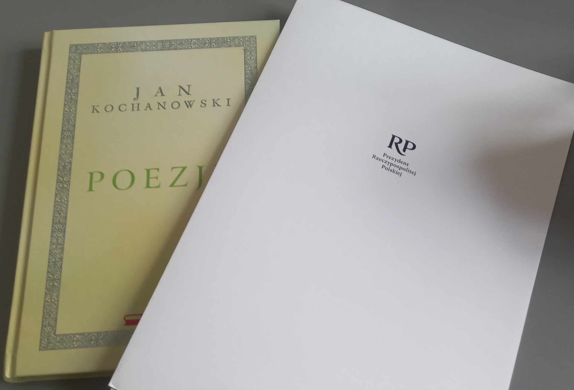 W ramach uznania za zaangażowanie w promocję polskiej literatury otrzymaliśmy okolicznościowe wydanie poezji Jana Kochanowskiego z piękną, odręczną dedykacją podpisaną przez Martę Nawrocką oraz Karola Nawrockiego.