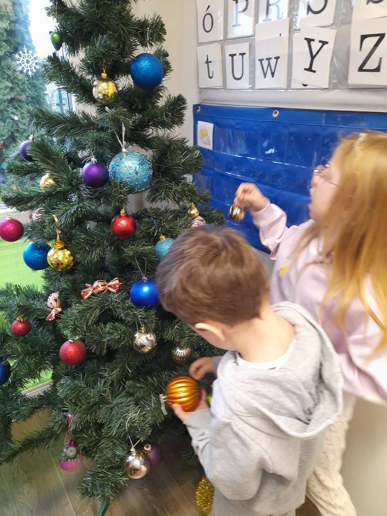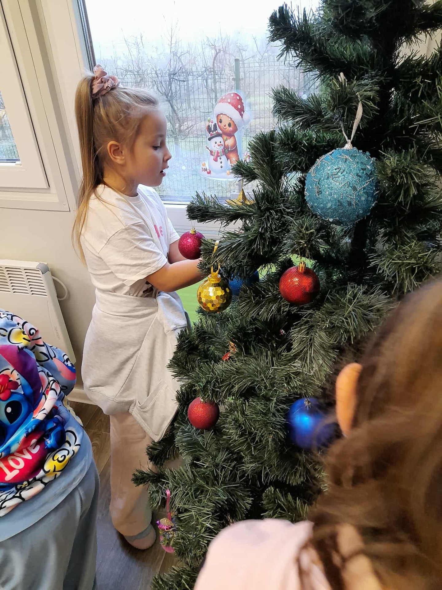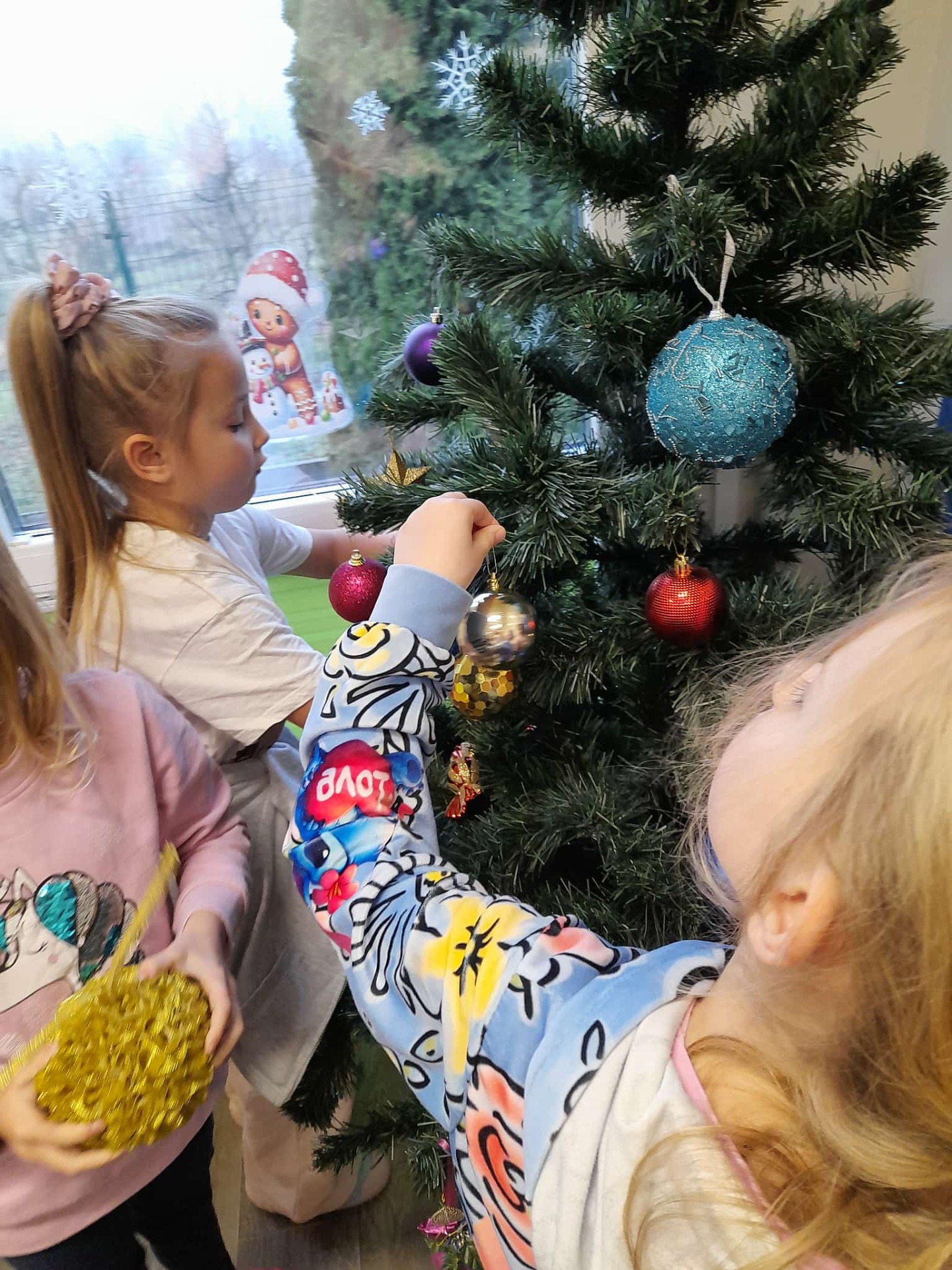 Od poniedziałku w naszym przedszkolu zapanował prawdziwie świąteczny klimat! 🎄✨ Wspólnie ubraliśmy naszą przedszkolną choinkę, która od razu wprowadziła wszystkich w magiczny nastrój. Dzieci z zapałem wieszały bombki, światełka i inne choinkowe ozdoby — każda z nich dodała drzewku wyjątkowego uroku. Wcześniej przedszkolaki uczestniczyły w warsztatach plastycznych, podczas których pod opieką Pani Klaudii samodzielnie wykonały piękne bombki. Dzięki temu dekorowanie choinki było jeszcze bardziej wyjątkowe! 🎨🎄 Było dużo radości, śmiechu i świątecznej muzyki, a nasza choinka już dumnie świeci i przypomina, że Święta tuż-tuż! ⭐🎁 Uwielbiamy takie wspólne, pełne ciepła chwile! ❤️🎄