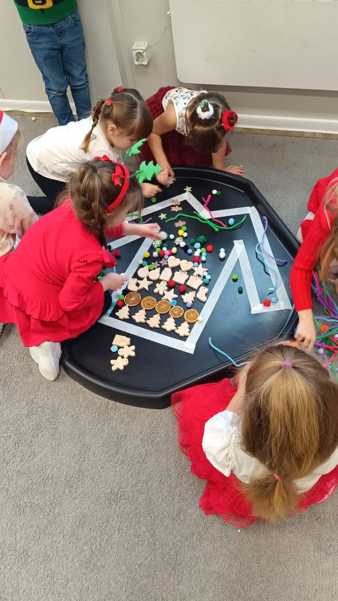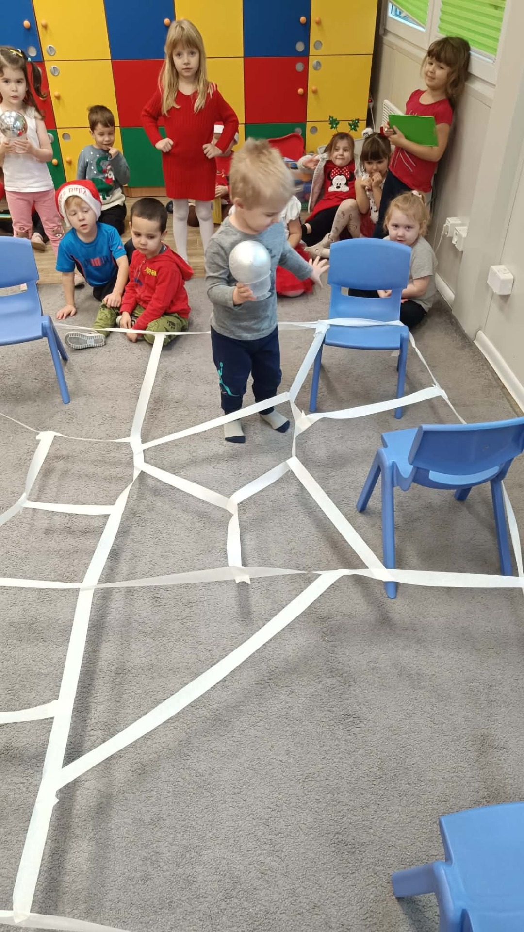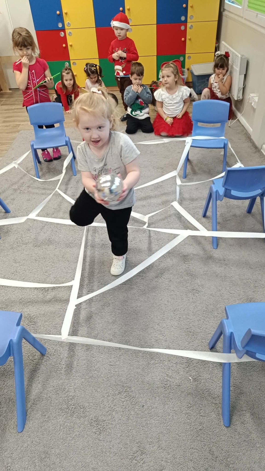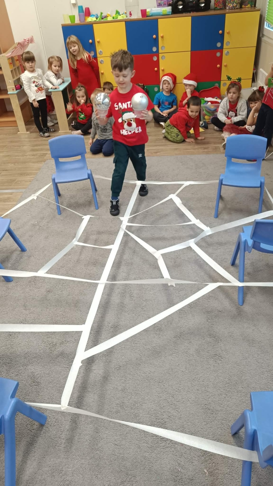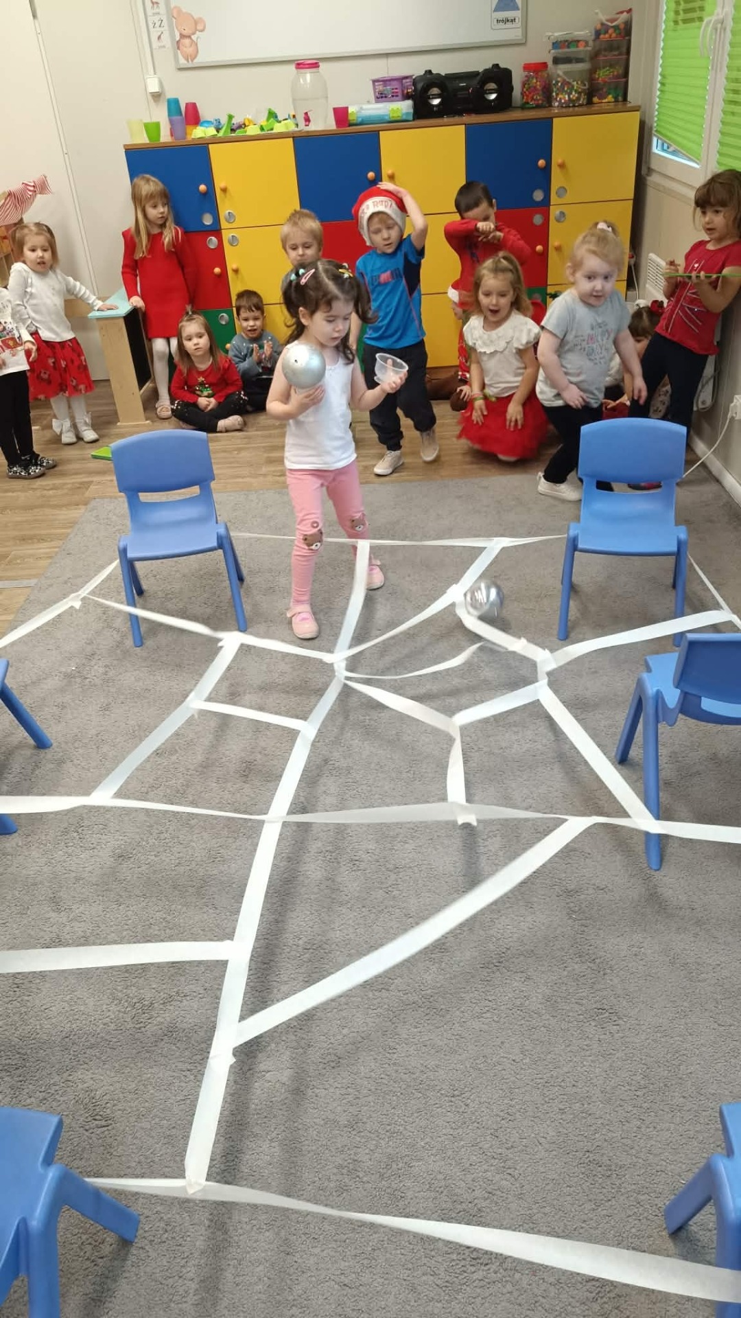 🏃 Mikołajkowy tor przeszkód: Nie zabrakło też ruchu! Ćwiczyliśmy koordynację podczas specjalnego toru przeszkód. Musimy się pochwalić – mimo trudnych zadań, na szczęście żadna bombka nie ucierpiała😅!