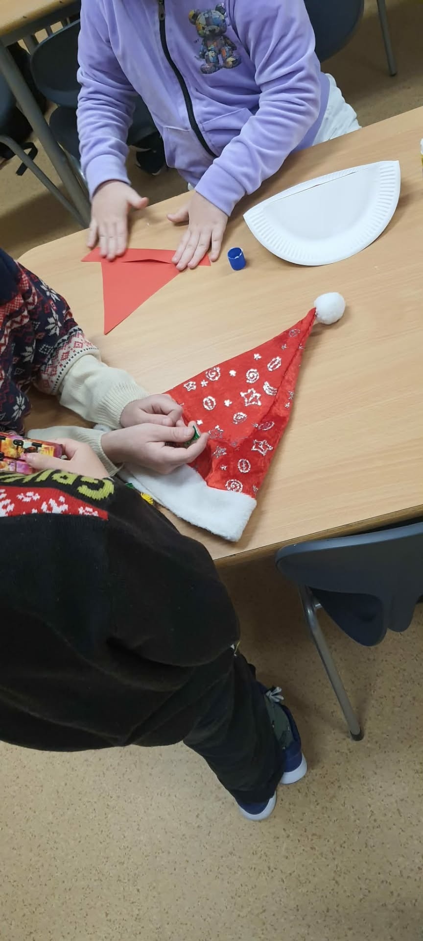 Podczas zajęć plastycznych w świetlicy dzieci z pełnym zaangażowaniem i radością tworzyły piękne, pełne uroku Mikołaje. Wykorzystując różnorodne materiały i własną wyobraźnię, wyczarowały kreatywne prace, które wprowadziły wszystkich w pogodny, świąteczny nastrój. Z okazji zbliżających się Mikołajek świetlica wypełniła się twórczą atmosferą, czerwienią czapeczek i szerokimi uśmiechami małych artystów.
