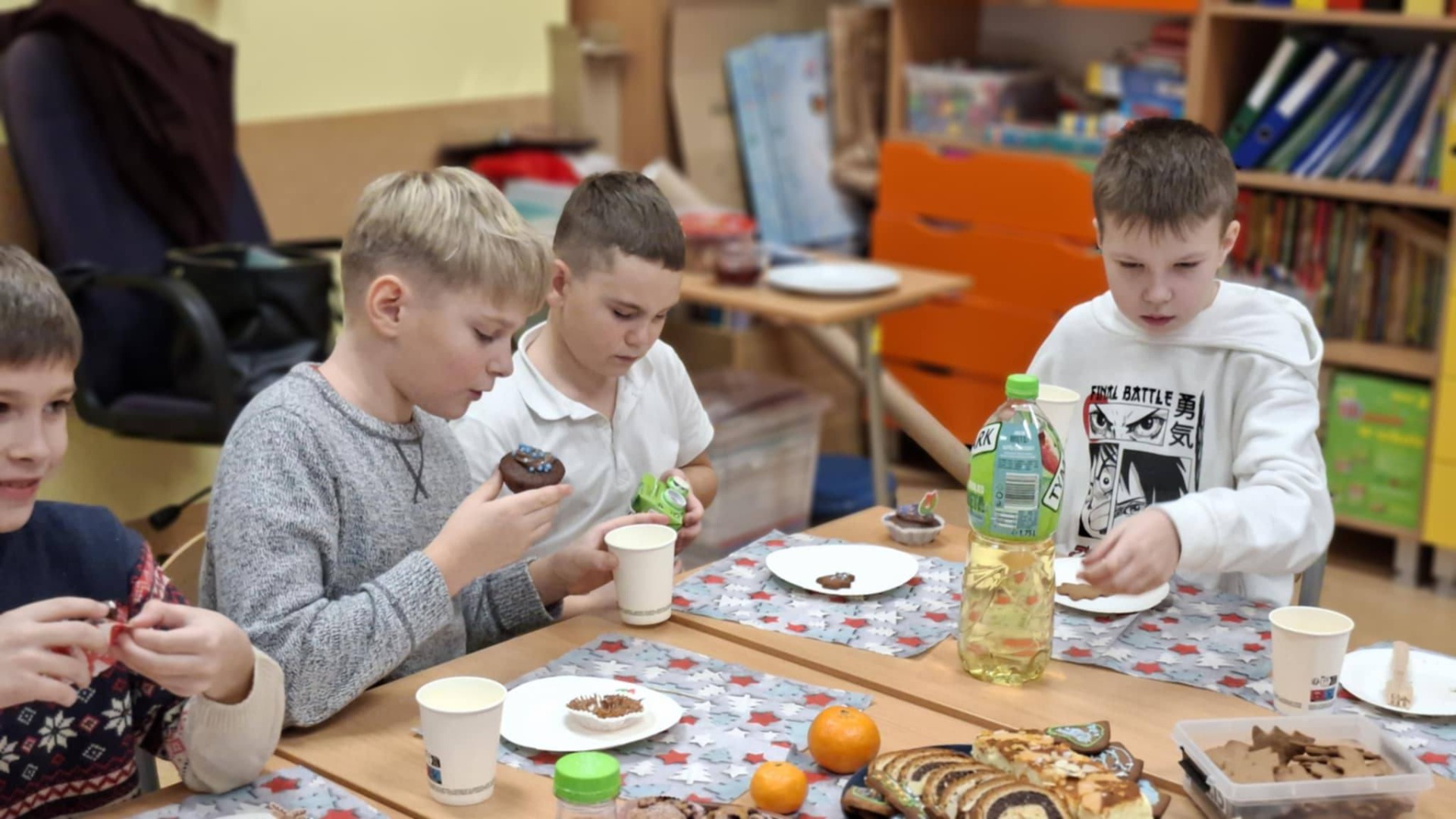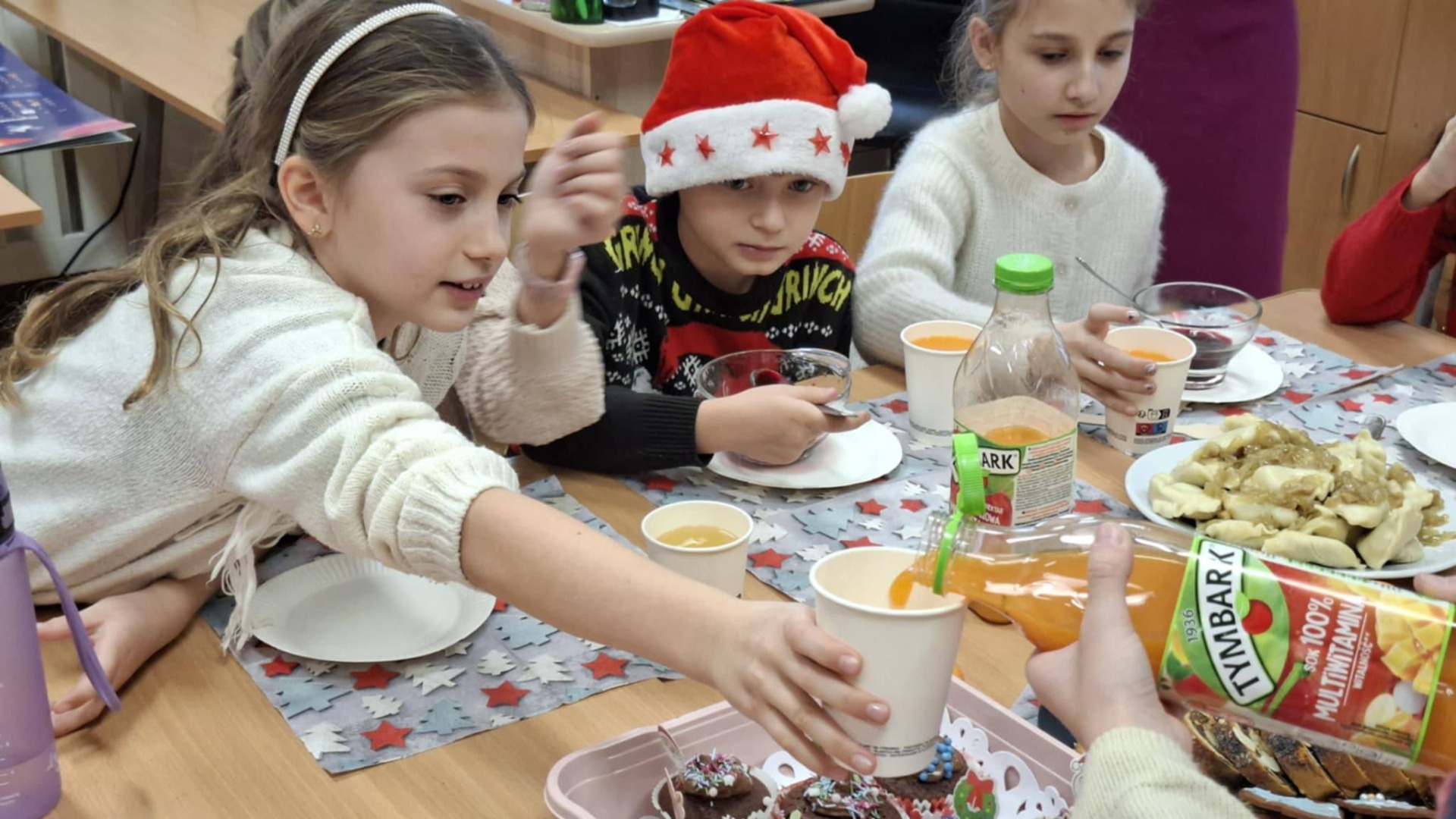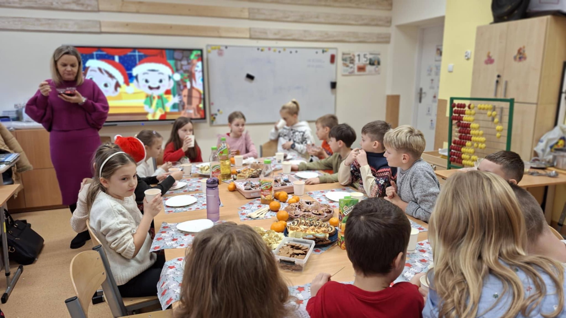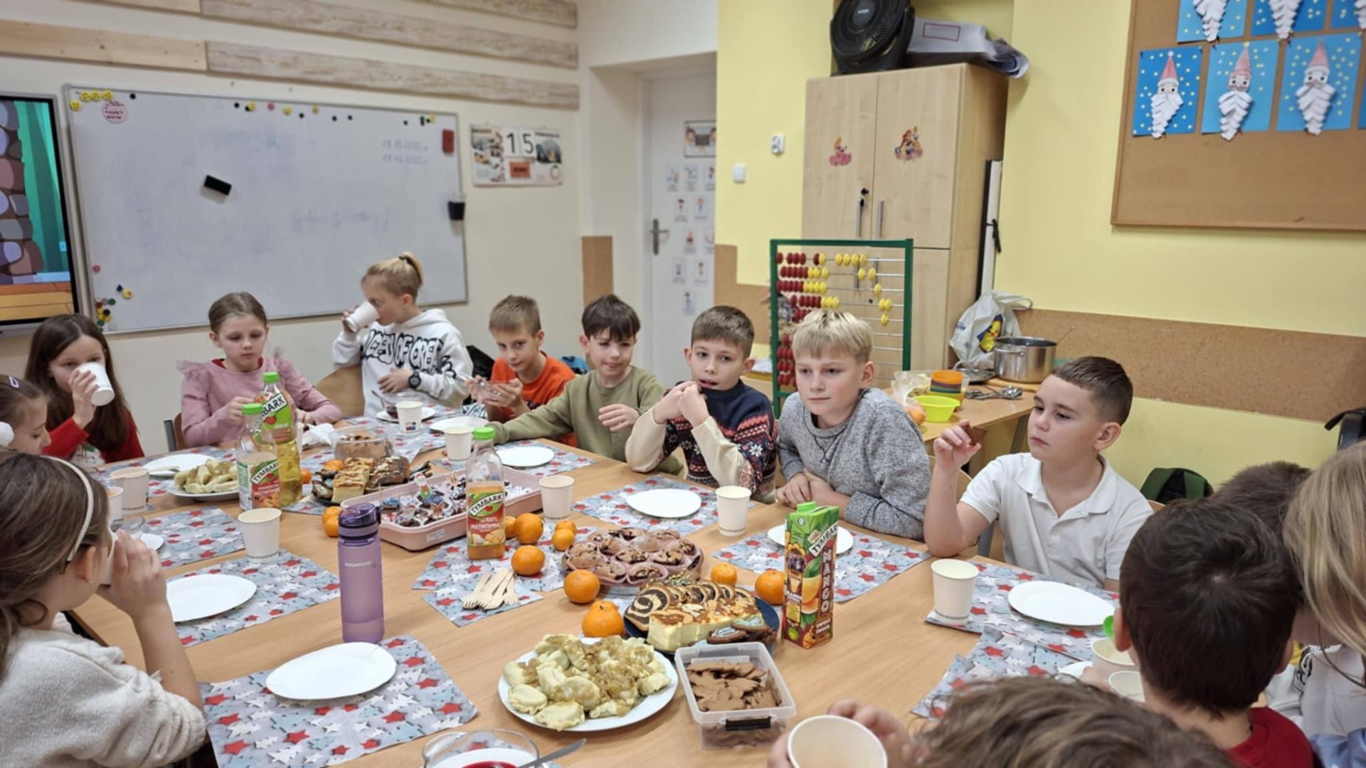 Okres przedświąteczny w naszej szkole, we wszystkich klasach, przebiegał w atmosferze uśmiechu, radości i wzajemnej życzliwości. Był to czas pełen prezentów oraz wesołego celebrowania nadchodzących świąt. Każda klasa obchodziła go z ogromną radością, spędzając wspólnie czas, kolędując i pielęgnując świąteczne tradycje. Takie chwile są niezwykle ważne dla naszej społeczności, ponieważ pozwalają nam razem cieszyć się magią nadchodzących świąt i wzmacniać więzi między uczniami.