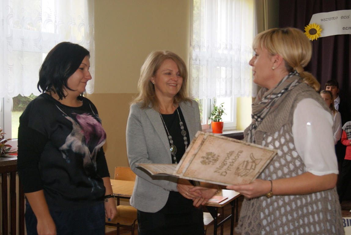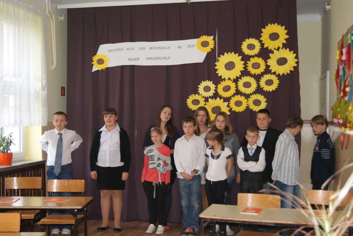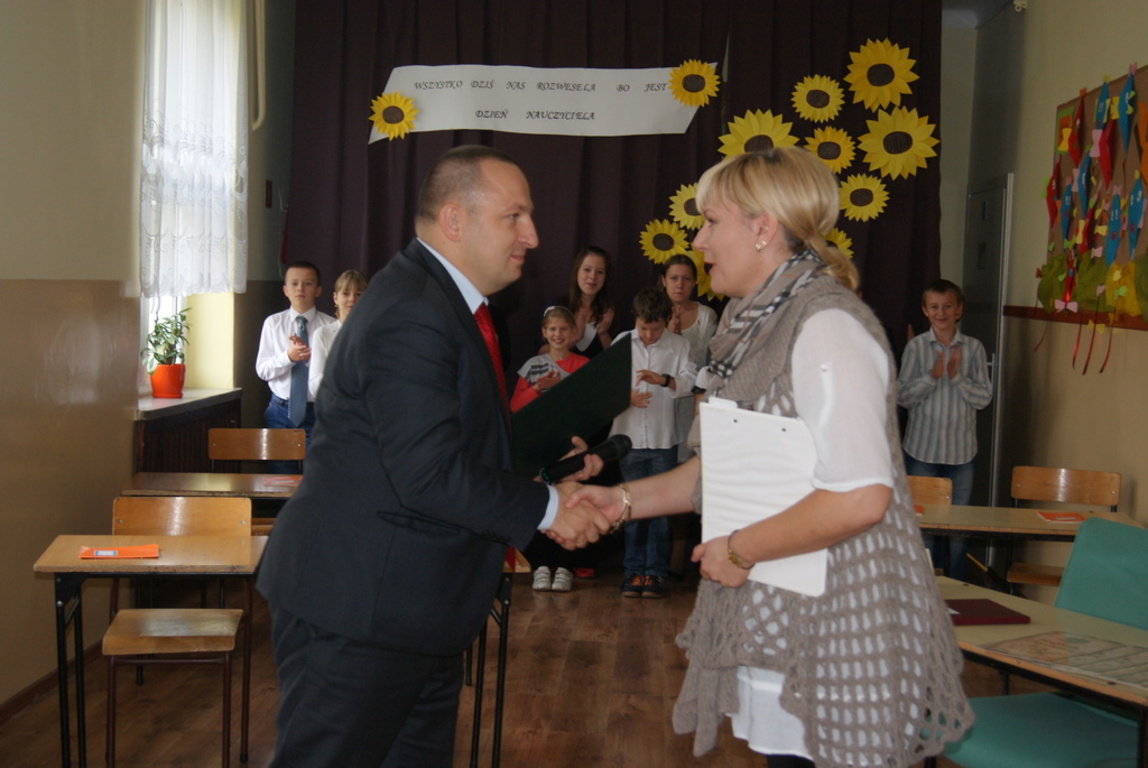 Dnia 15 października 2012 r. obchodziliśmy w Naszej Szkole Dzień Edukacji Narodowej. Z tej okazji Samorząd Uczniowski wraz z opiekunami przygotował uroczysty apel. Na uroczystości obecni byli przedstawiciele władz samorządowych, Wójt Gminy Pomiechówek p. Dariusz Bielecki, jak również cała Kadra Pedagogiczna, przewodnicząca Rady Rodziców p. Ewa Głuchowska, oraz cała społeczność uczniowska. W swoich przemówieniach zarówno p. Dyrektor Marzena Bryjak , jak również p. Wójt Dariusz Bielecki złożyli wszystkim nauczycielom i pracownikom szkoły serdeczne życzenia. W trakcie uroczystości p. Dyrektor Marzena Bryjak wręczyła nagrody za szczególne osiągnięcia w pracy dydaktyczno-wychowawczej nauczycielom oraz pracownikom administracji. Po części oficjalnej wszyscy pracownicy szkoły oraz zaproszeni goście udali się, na specjalnie z tej okazji przygotowany przez Radę Rodziców poczęstunek.