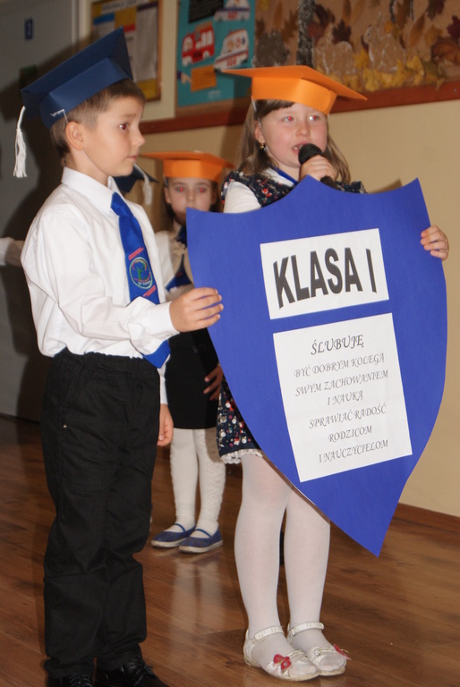 Aktu pasowania na ucznia dokonała dyrektor szkoły – Marzena Bryjak. Uczniowie klasy pierwszej otrzymali pamiątkowy Dyplom, legitymację szkolną oraz drobne upominki.