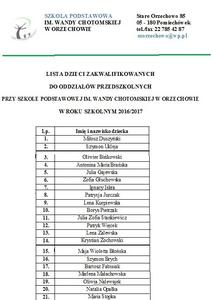 LISTA DZIECI ZAKWALIFIKOWANYCH DO ODDZIAŁÓW PRZEDSZKOLNYCH...