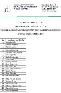 Lista dzieci przyjętych do oddziałów przedszkolnych...