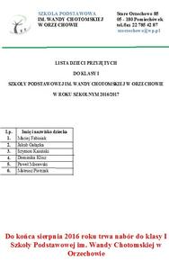 LISTA DZIECI PRZYJĘTYCH DO KLASY I SZKOŁY PODSTAWOWEJ...