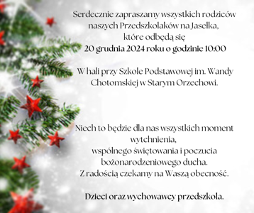 Zaproszenie na jasełka do oddziałów przedszkolnych