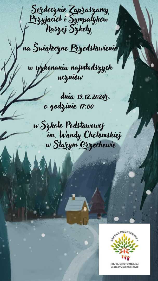 Serdecznie zapraszamy przyjaciół i sympatyków naszej szkoły na świąteczne przedstawienie przygotowane przez uczniów klas I-III.